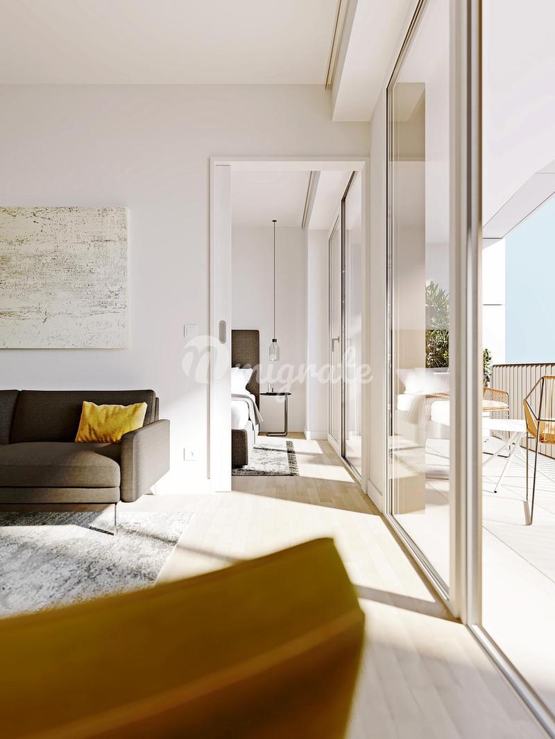Студия с огороженной спальней в новом жилом проеке, который строится в растущем деловом квартале в раойне Фридрихсхайн. Здесь расположены множество IT-стартапов, офисы Mercedes-Benz, PORR, Zalando Sho