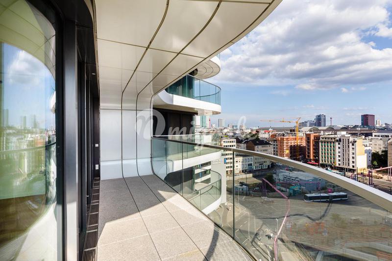 Самая высокая жилая башня Германии имеет высоту 172 м и 47 этажей. За стеклянным фасадом от пола до потолка на 27-м этаже находится эта первоклассная квартира с 4 спальнями, площадью около 112 кв.м. Н