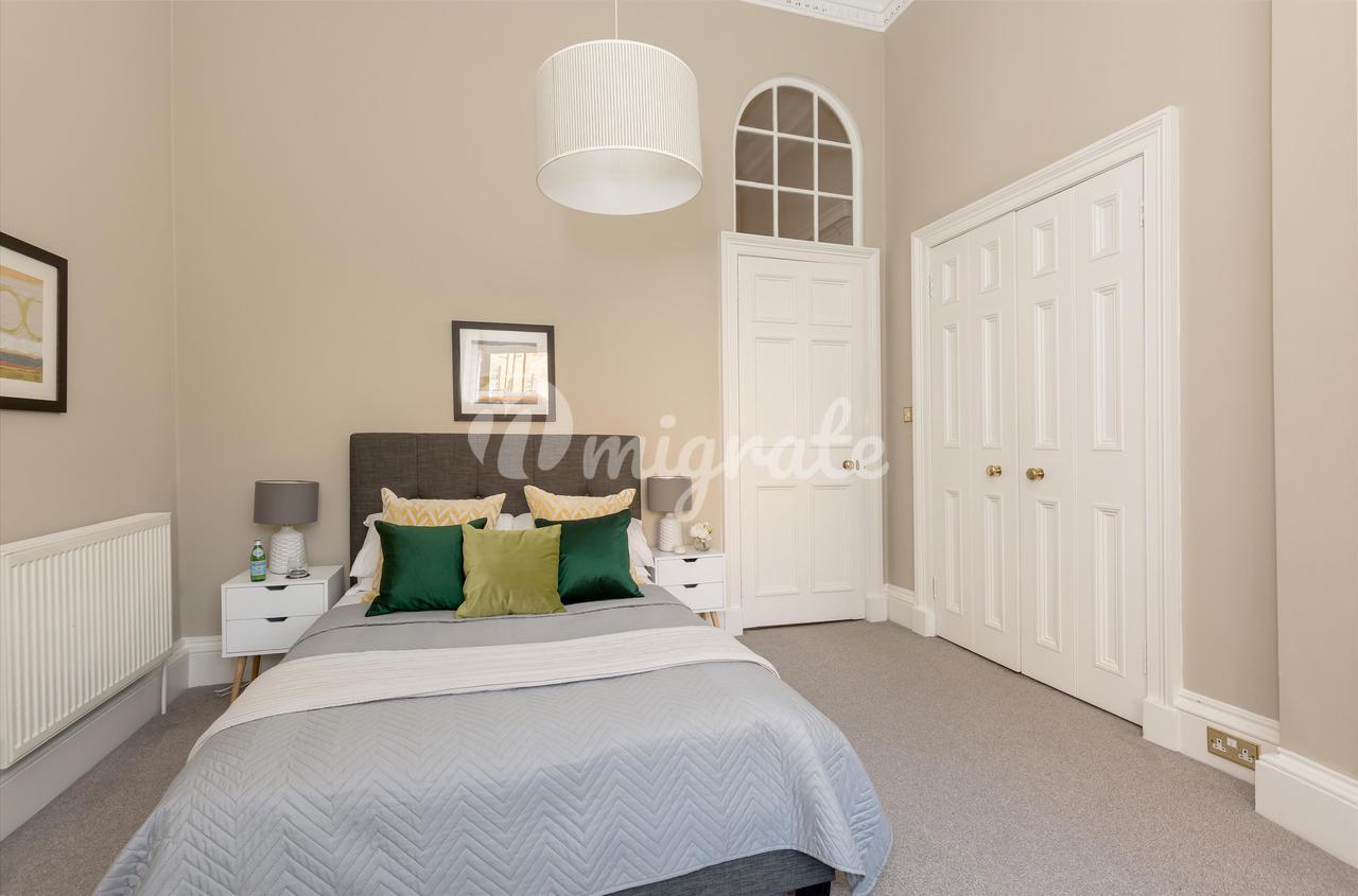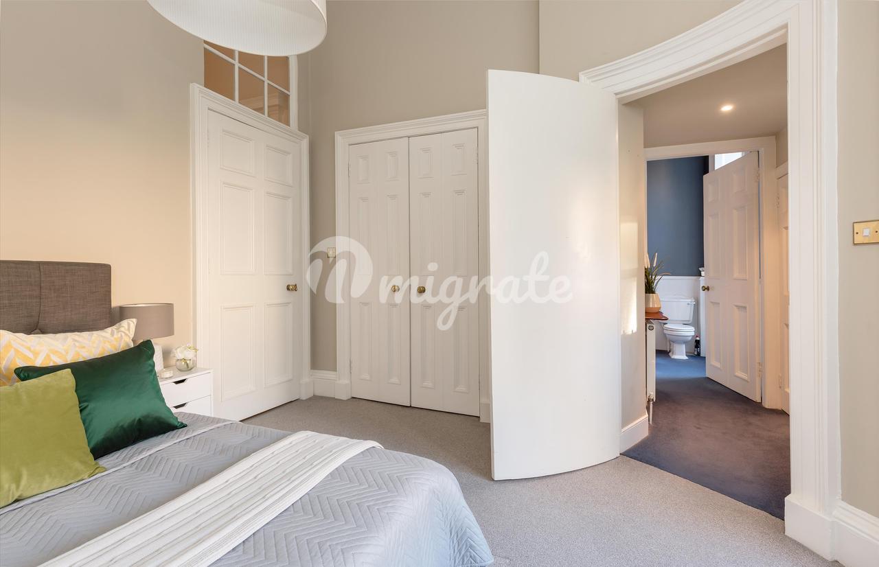 Это пропорциональная квартира с четырьмя спальнями и частным садом, занимающая первый и садовый уровни. В собственность можно попасть на первом этаже через умный общий вход или на уровне сада непосредственно в квартиру.