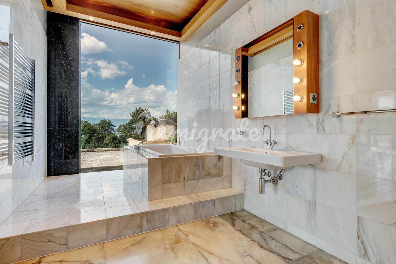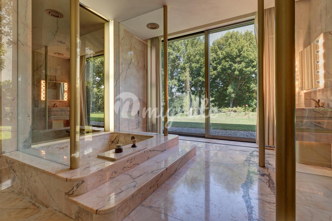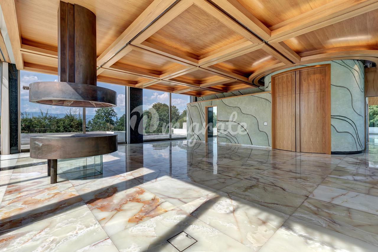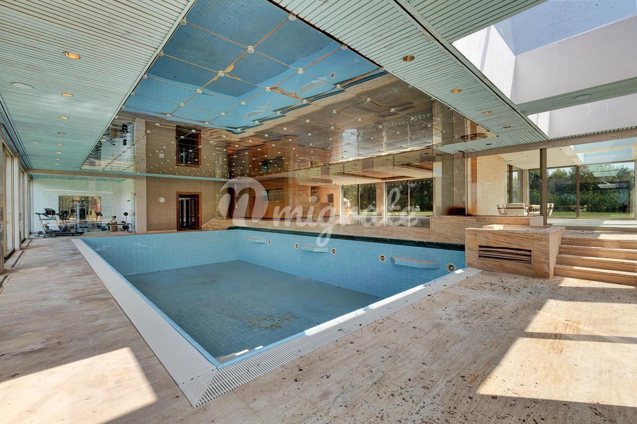 Огромная прихожая, окруженная бассейнами с водой, ведет к просторной гостиной с камином и столовой со стеклянными стенами. Здесь также есть старинная кухня, кабинет, спальня с камином, ванная комната с мраморным джакузи и гардеробная. вторая спальня с ванной и заканчивая этим уровнем бассейн 12 х 20 метров с прилегающим тренажерным залом и раздевалкой.