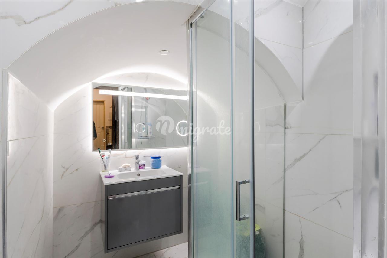 Имущество было недавно отремонтировано и находится на нижнем этаже через отдельный вход в коридор с кладовой / подсобным помещением, слева находится душевая комната, а справа - основное жилое пространство. Номер-студио очень просторен, в нем есть встроенное место для хранения вещей, кафельный пол и раскладная кровать для экономии места. Отдельная кухня предлагает хорошее рабочее пространство и бытовую технику. в доме также установлены полы с подогревом.