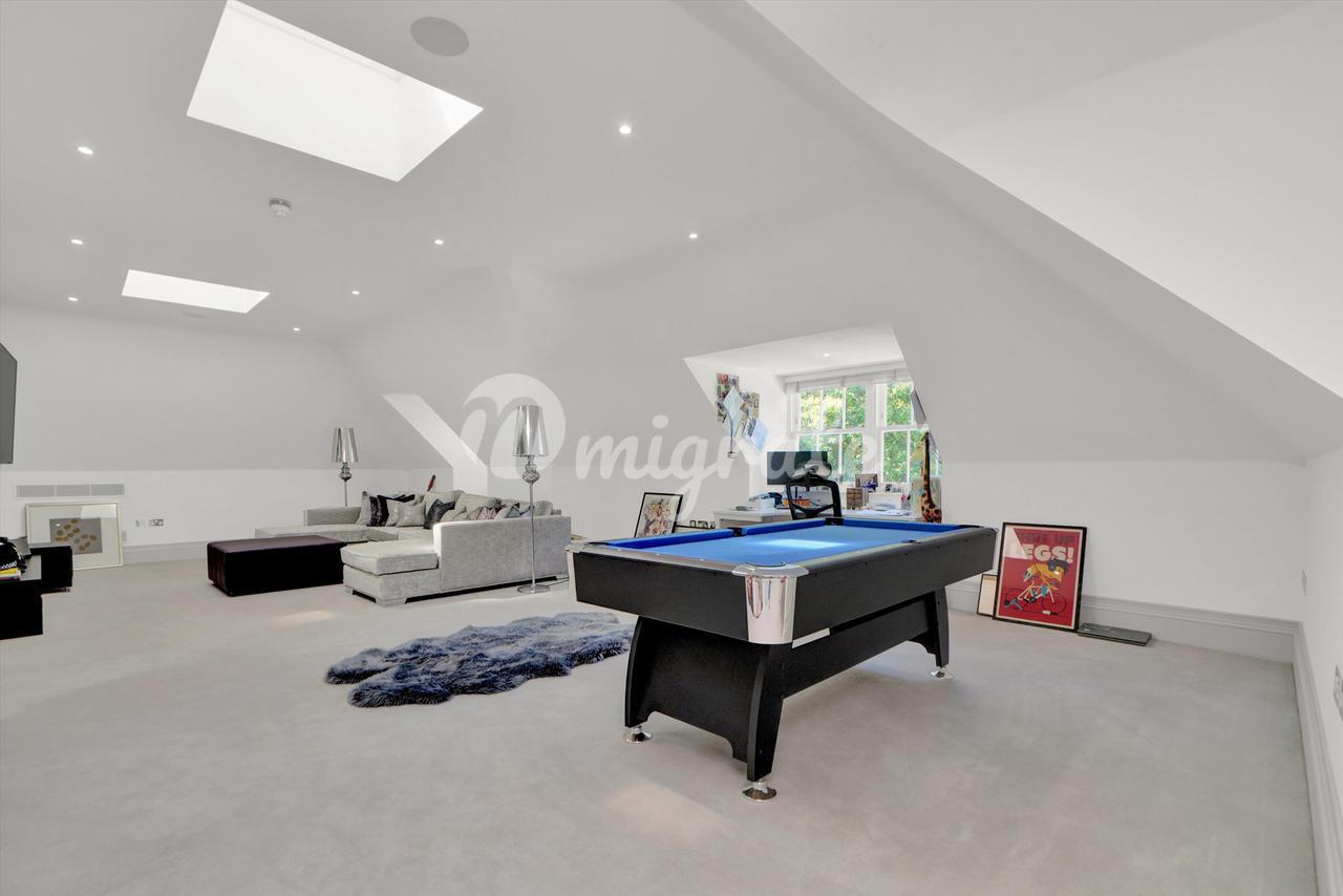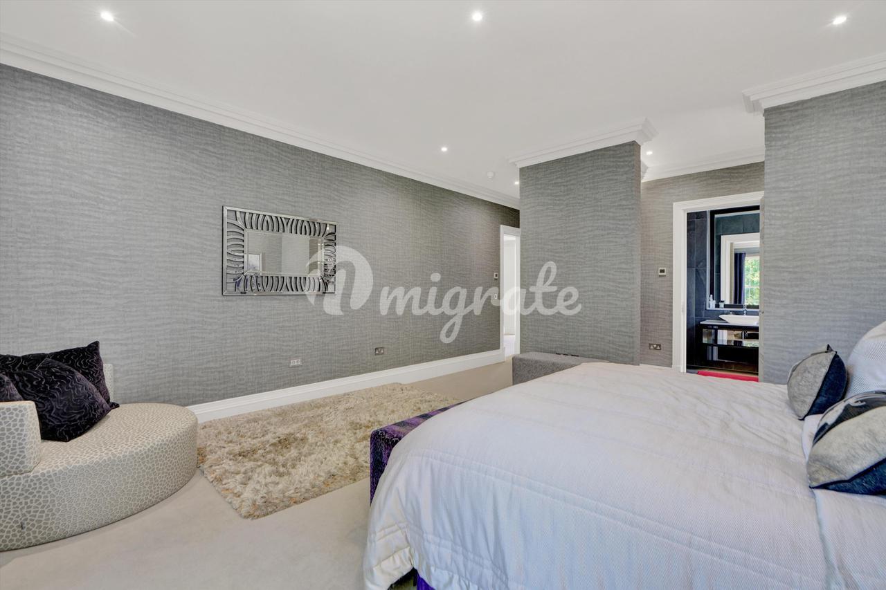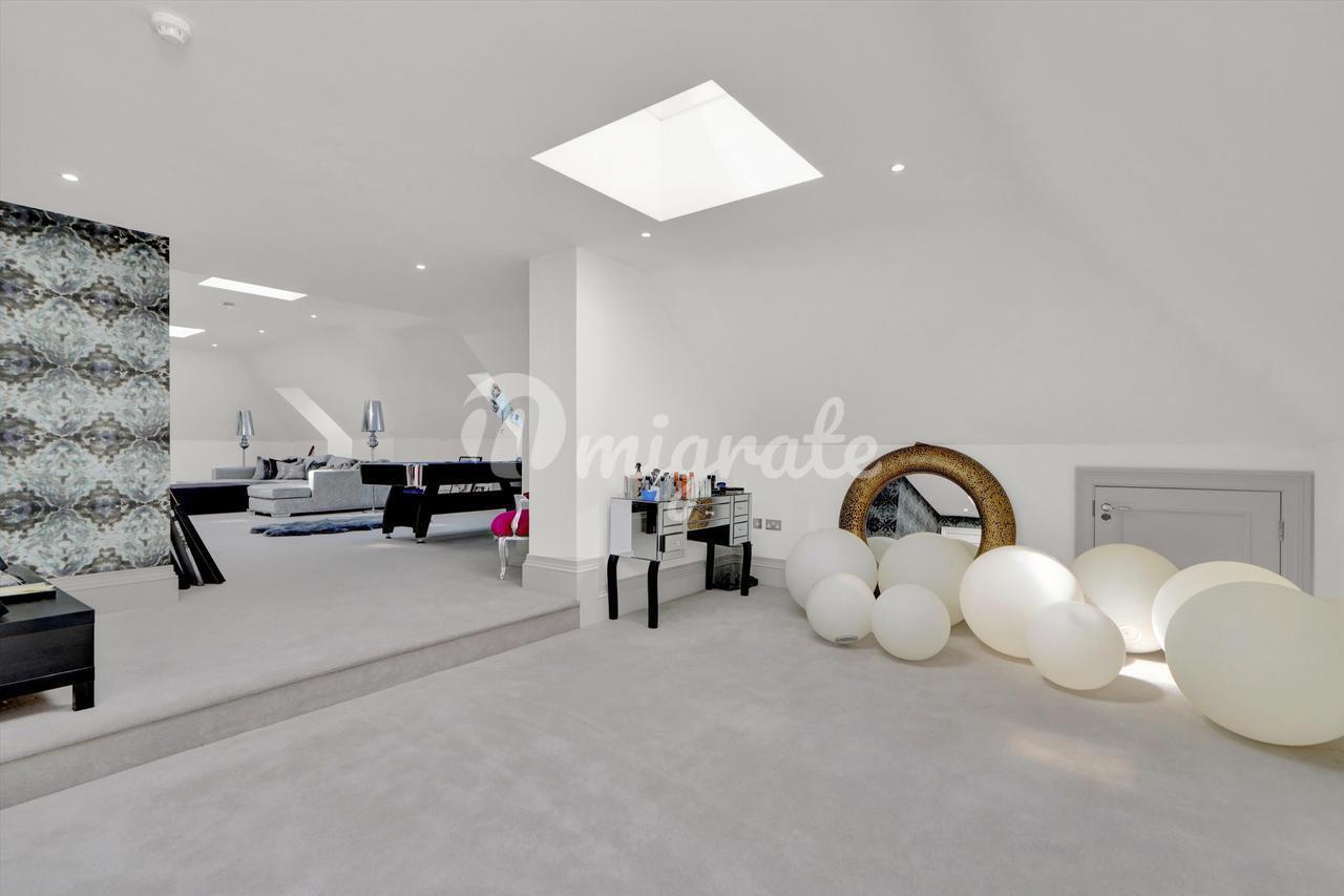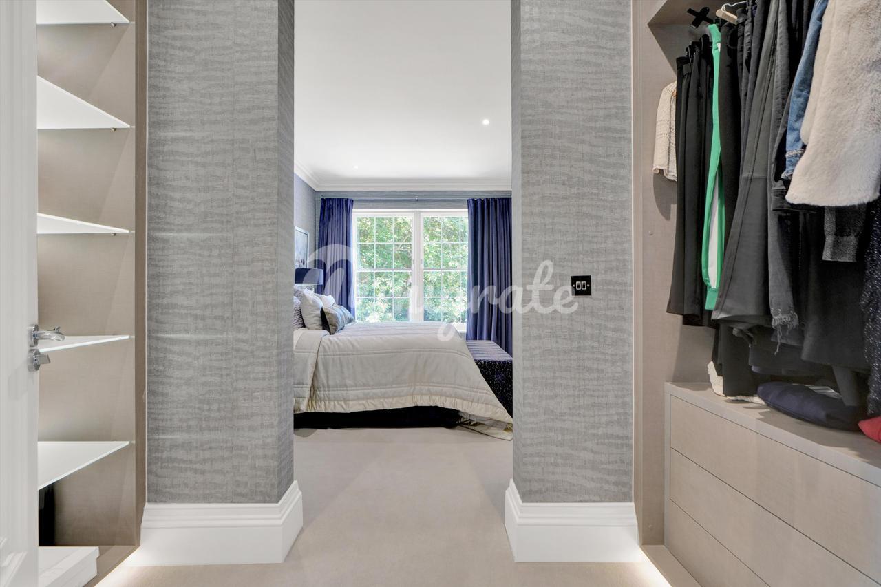 Главный люкс расположен на втором этаже с видом на сад и может похвастаться впечатляющей гардеробной и ванной комнатой. Еще три спальни с двуспальными кроватями отличного размера и ванными комнатами расположены на втором этаже. На верхнем этаже есть большая спальня с ванной комнатой и большая гостиная / игровая комната.