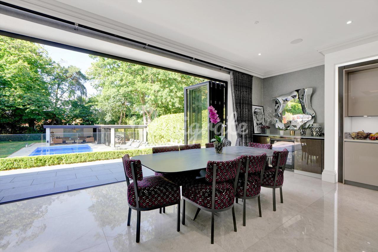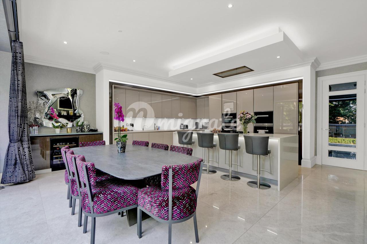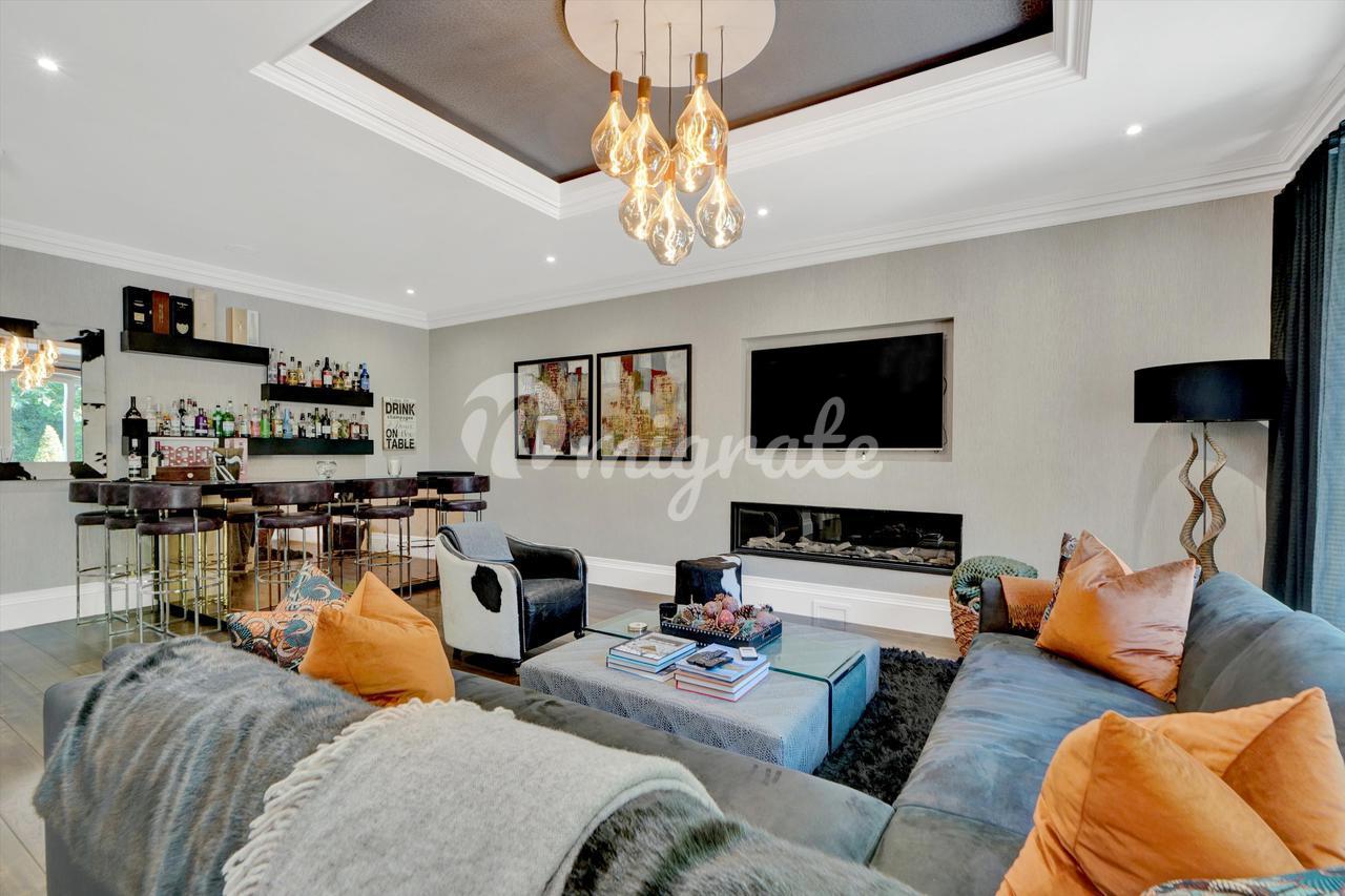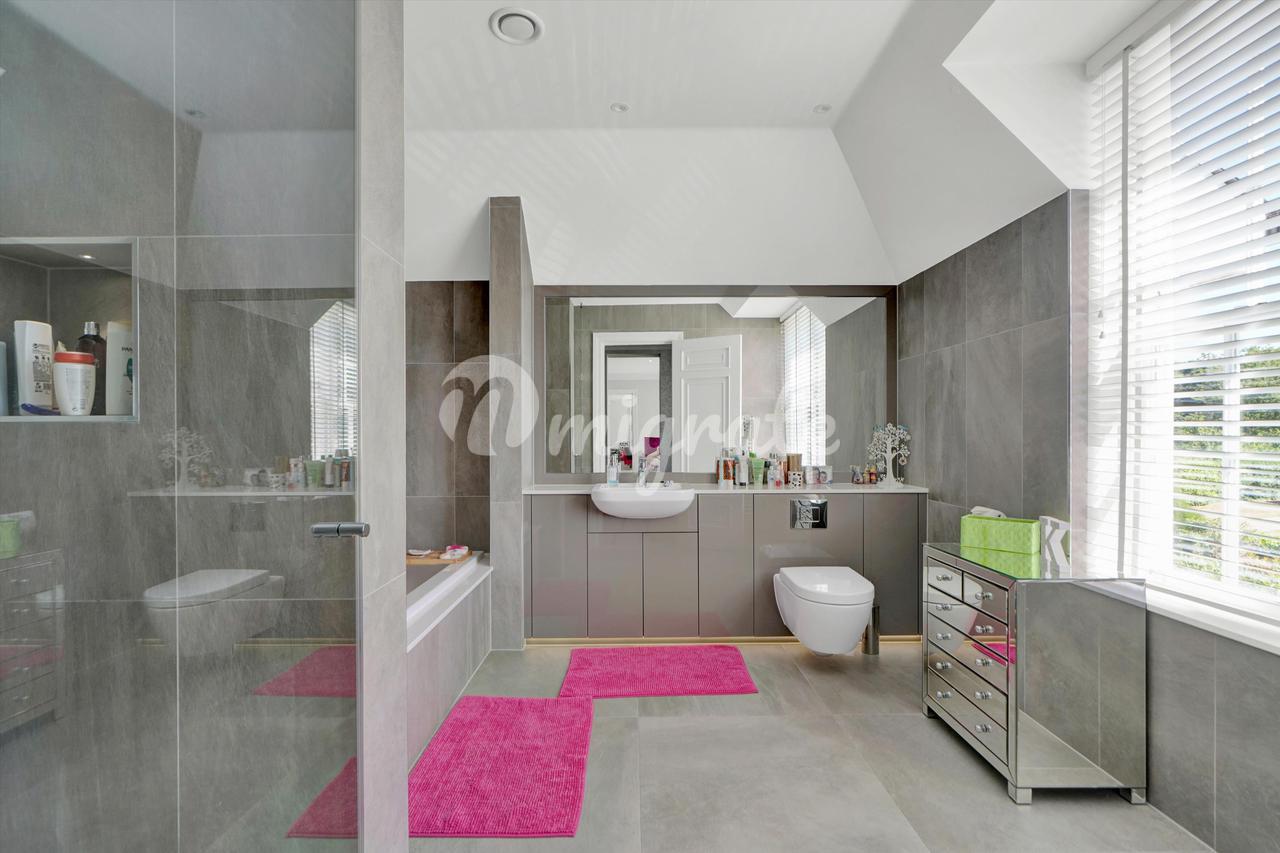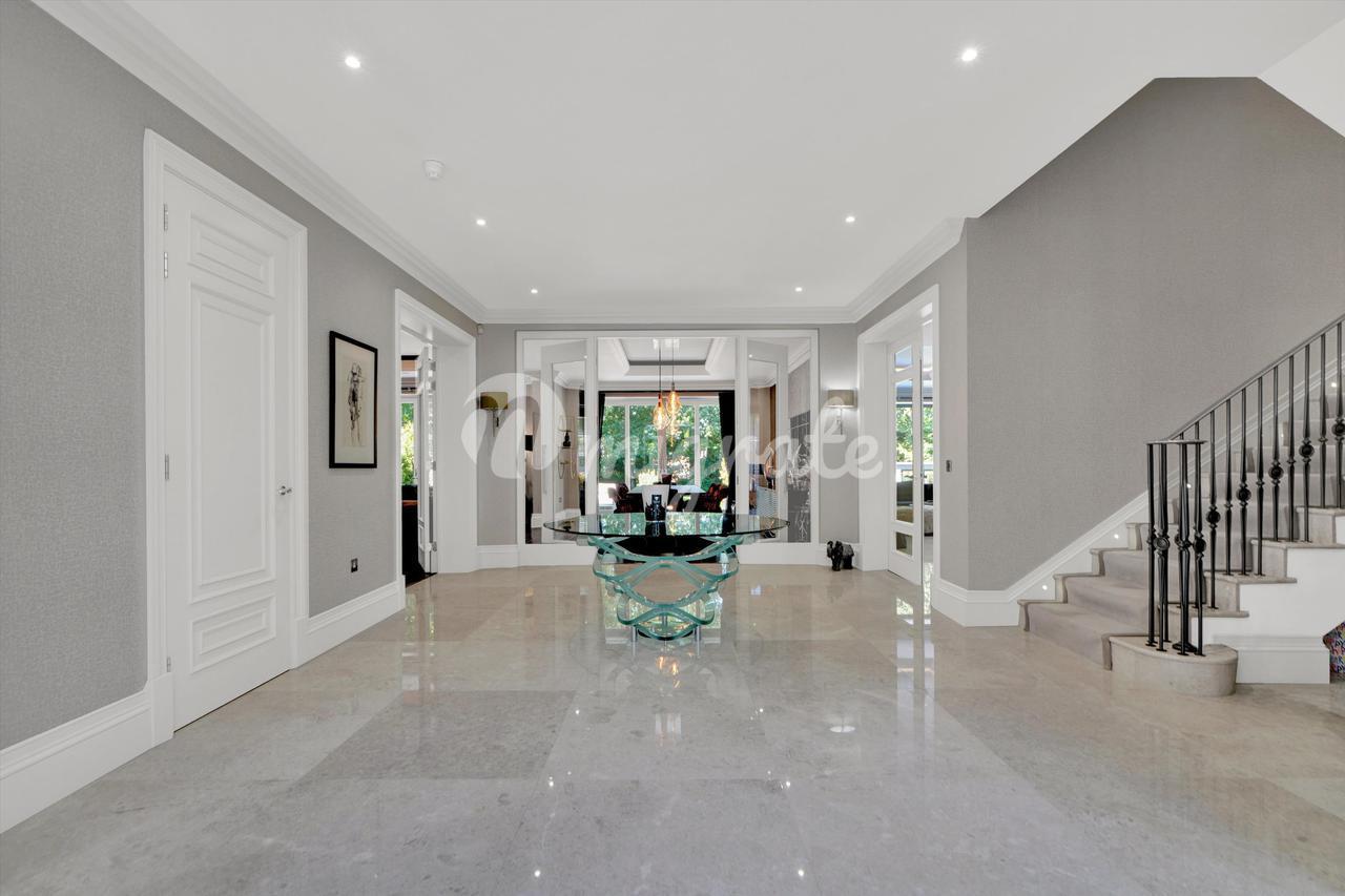 Главный люкс расположен на втором этаже с видом на сад и может похвастаться впечатляющей гардеробной и ванной комнатой. Еще три спальни с двуспальными кроватями отличного размера и ванными комнатами расположены на втором этаже. На верхнем этаже есть большая спальня с ванной комнатой и большая гостиная / игровая комната.