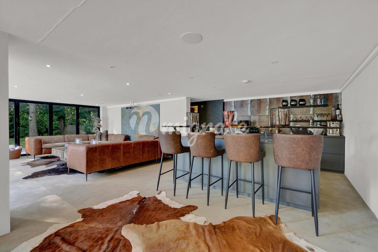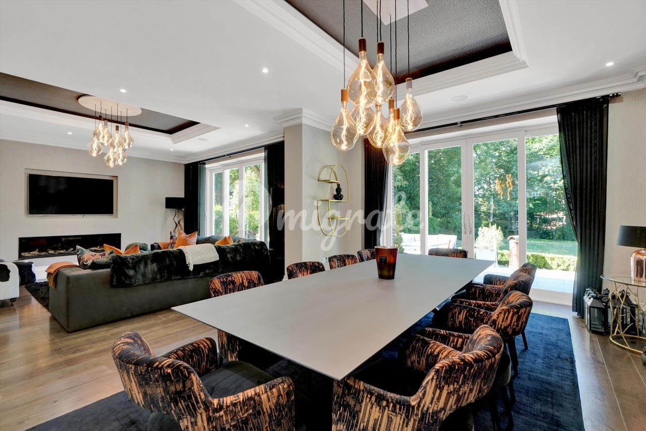 При входе вы сразу же поражаетесь простору и свету. В передней части у вас есть большой кабинет и приемная. Здесь есть стильная официальная гостиная, оборудованная баром, который соединяется со столовой; идеально подходит для приема гостей. Далее находится кухня-столовая и гостиная открытой планировки, которая, безусловно, является центром этого сказочного дома. Все комнаты в задней части ведут прямо к совершенно новому бассейну с подогревом и домику у бассейна. На нижнем этаже также есть туалет, подсобное помещение и гараж на две машины.