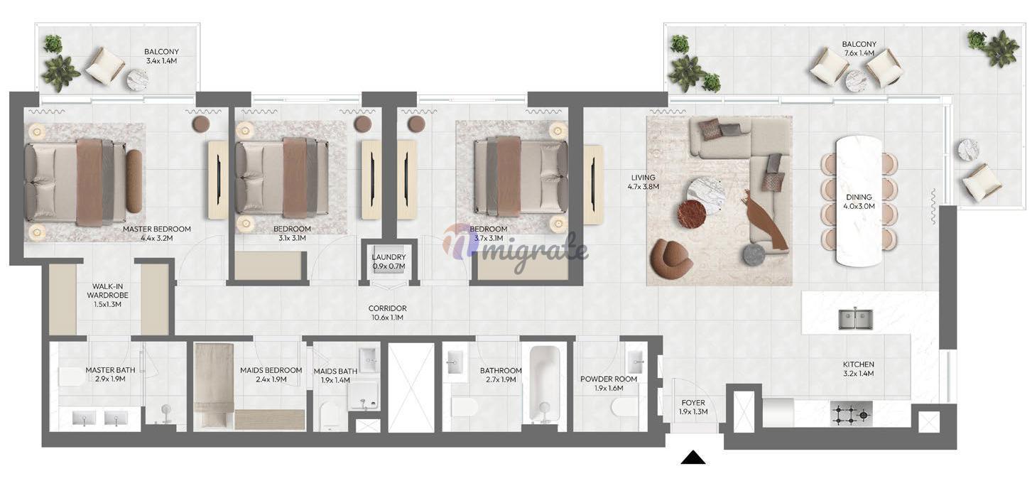 Мы рады представить вам эту квартиру с 3 спальнями в Golf Point, расположенном на юге Дубая.