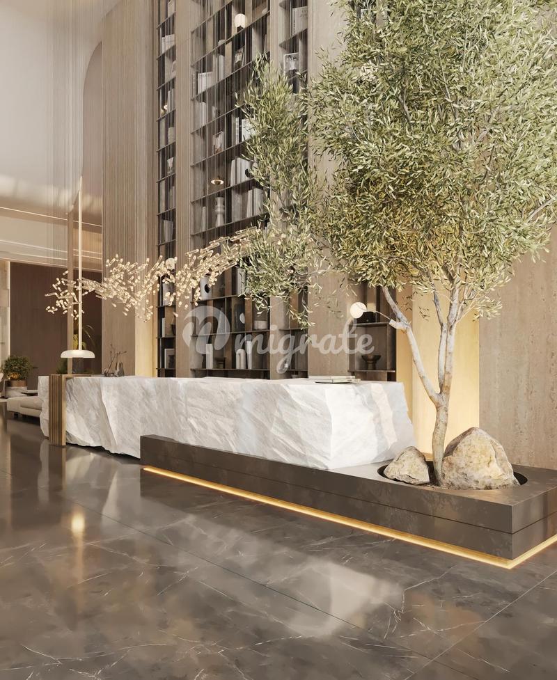 Из окон квартиры открывается превосходный вид на гольф поле. Интерьеры отличаются элегантным современным дизайном, гармонизирующими тонами, природными элементами и достаточным естественным освещением.