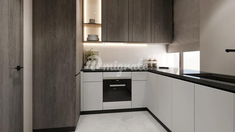 Из окон квартиры открывается превосходный вид на гольф поле. Интерьеры отличаются элегантным современным дизайном, гармонизирующими тонами, природными элементами и достаточным естественным освещением.