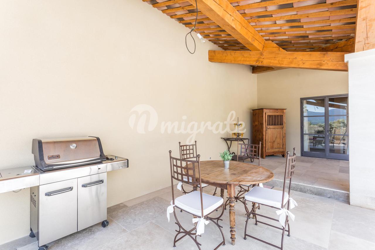 Снаружи большой участок земли с видом на Люберон и деревни Оппед-ле Можно по достоинству оценить Вье и Менерб.