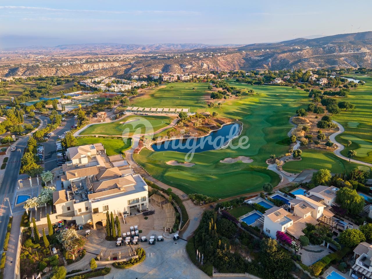 Апартаменты расположены на роскошном жилом и спортивно-развлекательном курорте на побережье Средиземного моря, в 20 км от Пафоса и в 45 км от Лимасола. На территории курорта расположен гольф-клуб, который включает в себя одно из лучших гольф-полей мира и академию гольфа; 9 теннисных кортов и академия тенниса; СПА- и фитнес-центры с процедурными комнатами, бассейном и саунами; клуб верховой езды и множество игровых площадок для детей. Кроме того, к услугам жителей курорта многочисленные рестораны, кафе, бары и магазины, а рядом с курортом находятся лучшие пляжи Кипра.