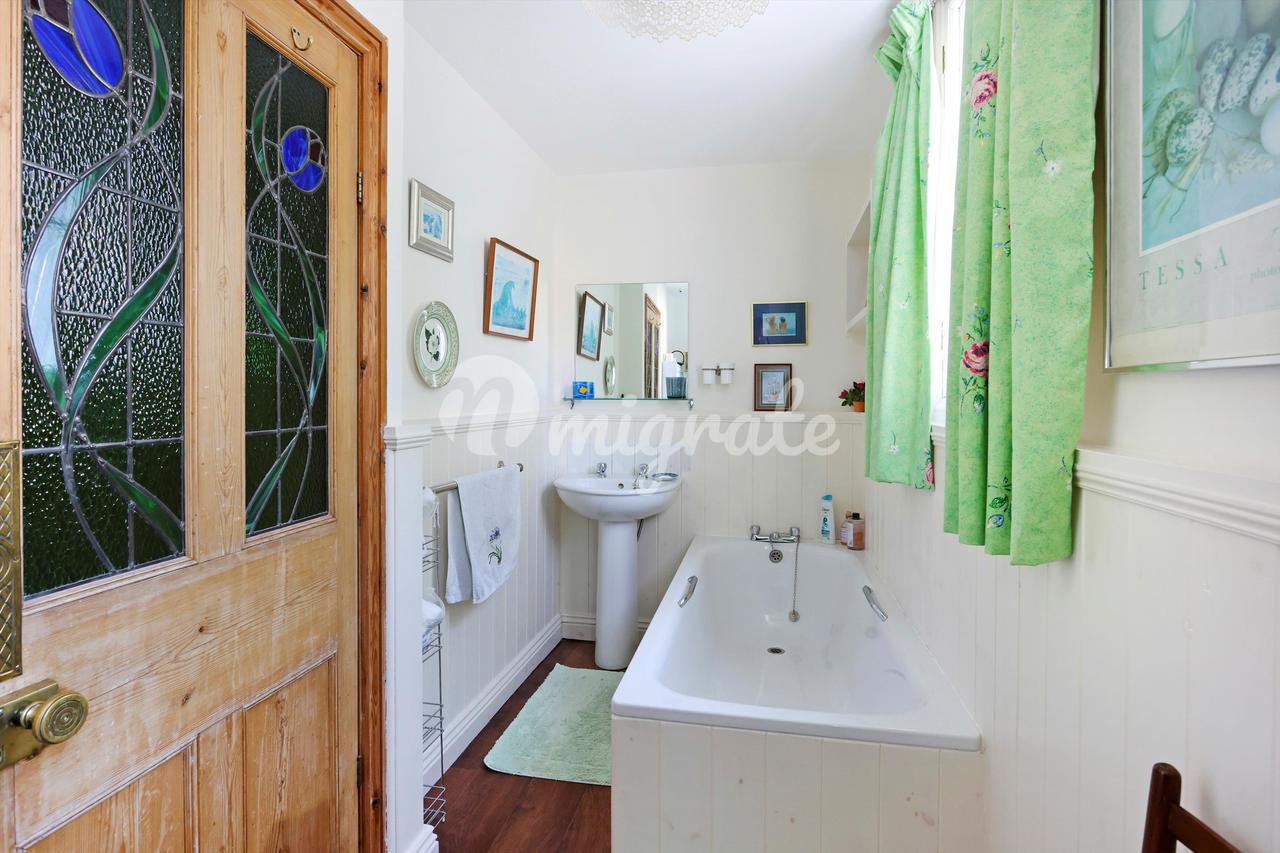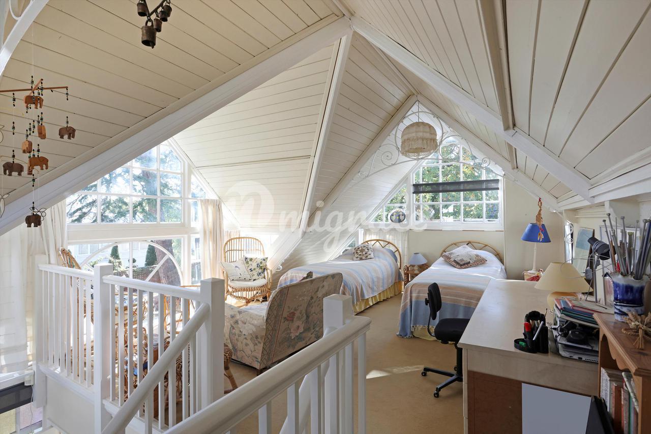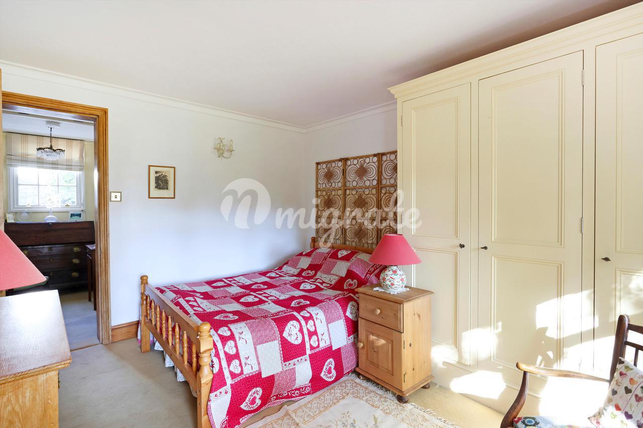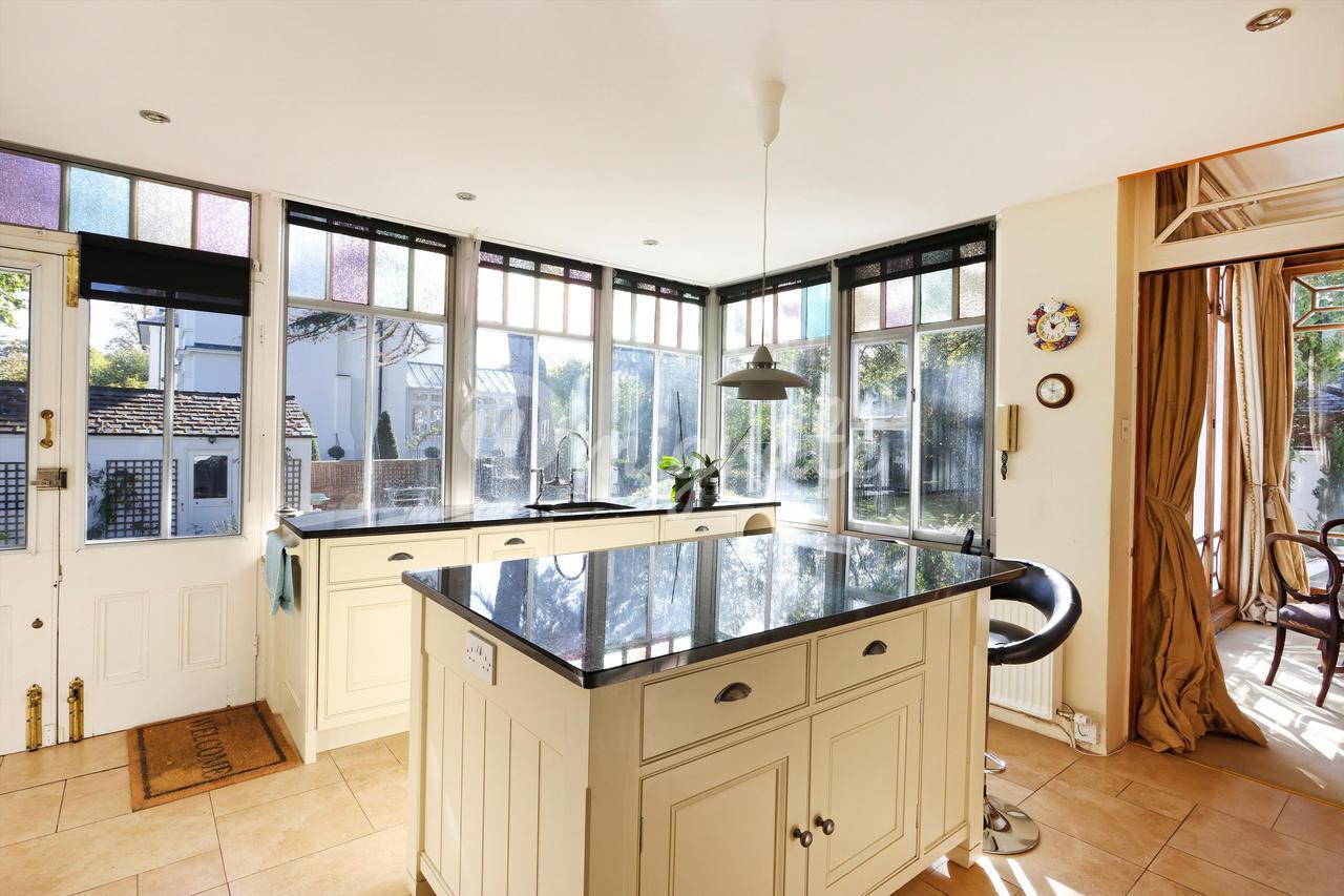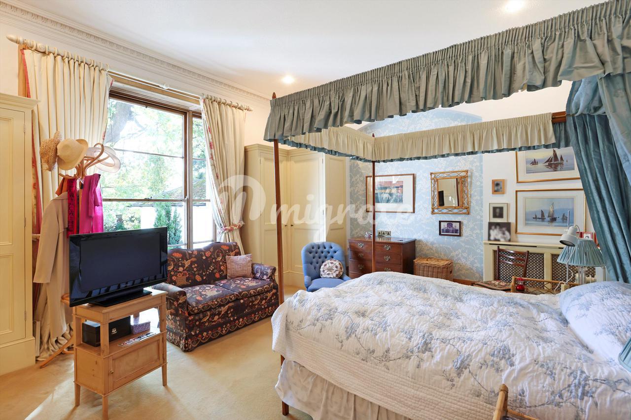 Сбоку от дома есть потрясающая оранжерейная пристройка, соединенная через кухню с лестницей, ведущей в комнату, которая ранее использовалась как студия, но также является отличной спальней для гостей. Отсюда открывается прекрасный вид на сады, а застекленная крыша пропускает достаточно естественного света.