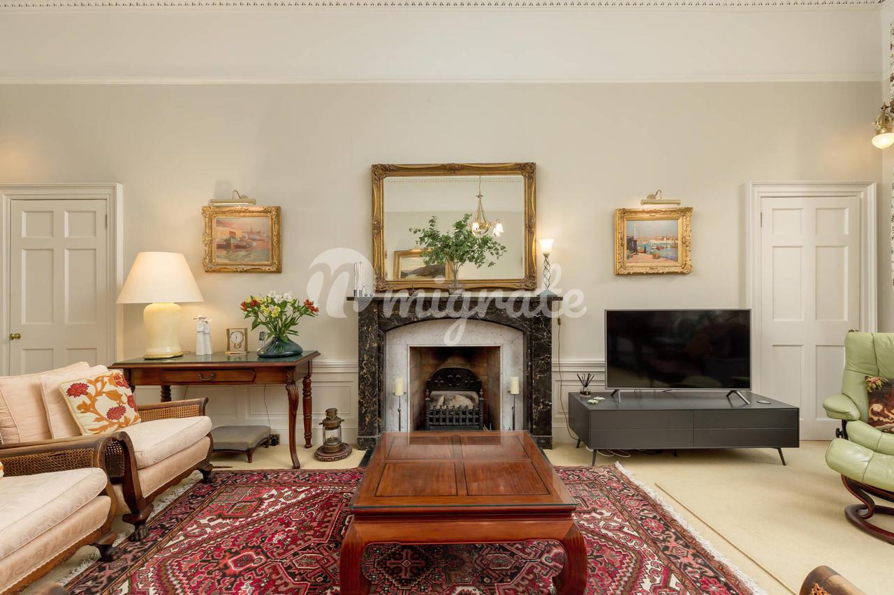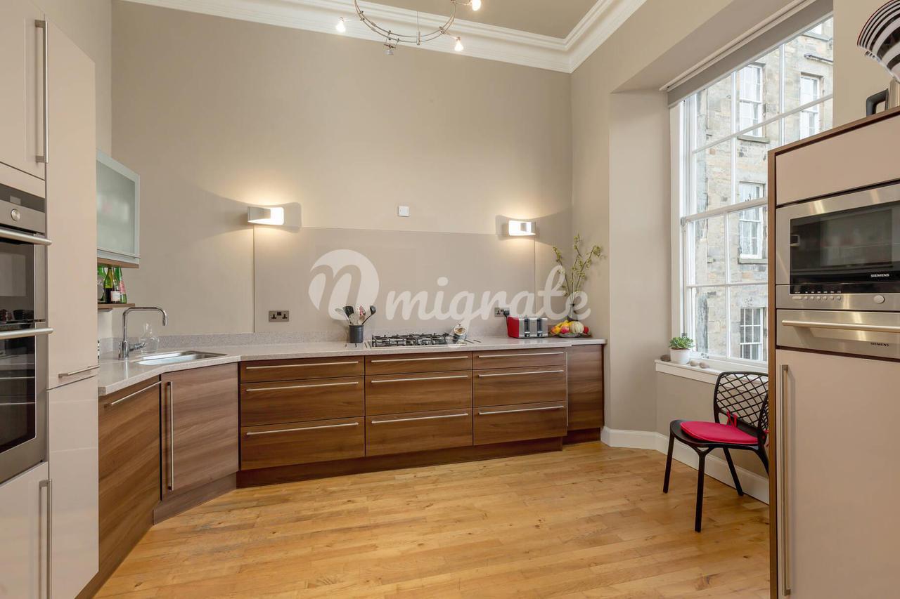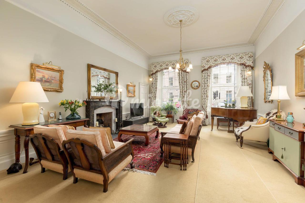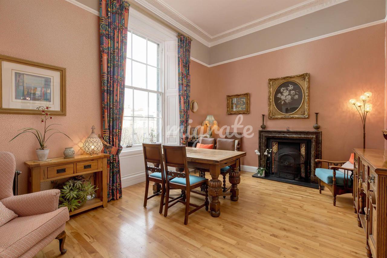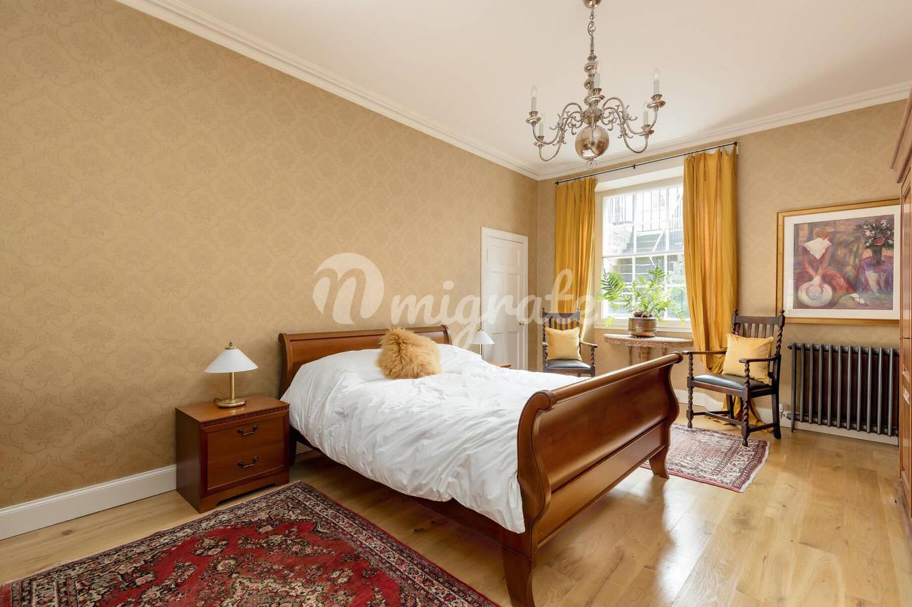 Эти светлые и просторные апартаменты с пятью спальнями расположены на трех этажах и являются частью оригинального таунхауса в георгианском стиле, в непосредственной близости от центра города и Стокбриджа. ключевые оригинальные черты той эпохи, включая богато украшенный карниз, мраморные камины и широкие створки и окна в сочетании с роскошными интерьерами. На уровне земли ухоженный общий вход ведет к входной двери. Коридор ведет в большую гостиную, столовую, элегантную современную кухню и туалет. Нижний этаж предлагает частный доступ к фасаду с отдельным входом во двор и двумя сухими подвалами; размещение на этом уровне включает в себя главную спальню с Эдинбургской прессой и ванной комнатой; еще три спальни с двуспальными кроватями и семейная ванная комната. На уровне сада находится еще одна спальня с двуспальной кроватью и собственной душевой, подсобное помещение и прихожая с прямым выходом в большой ландшафтный сад, обнесенный стеной.
