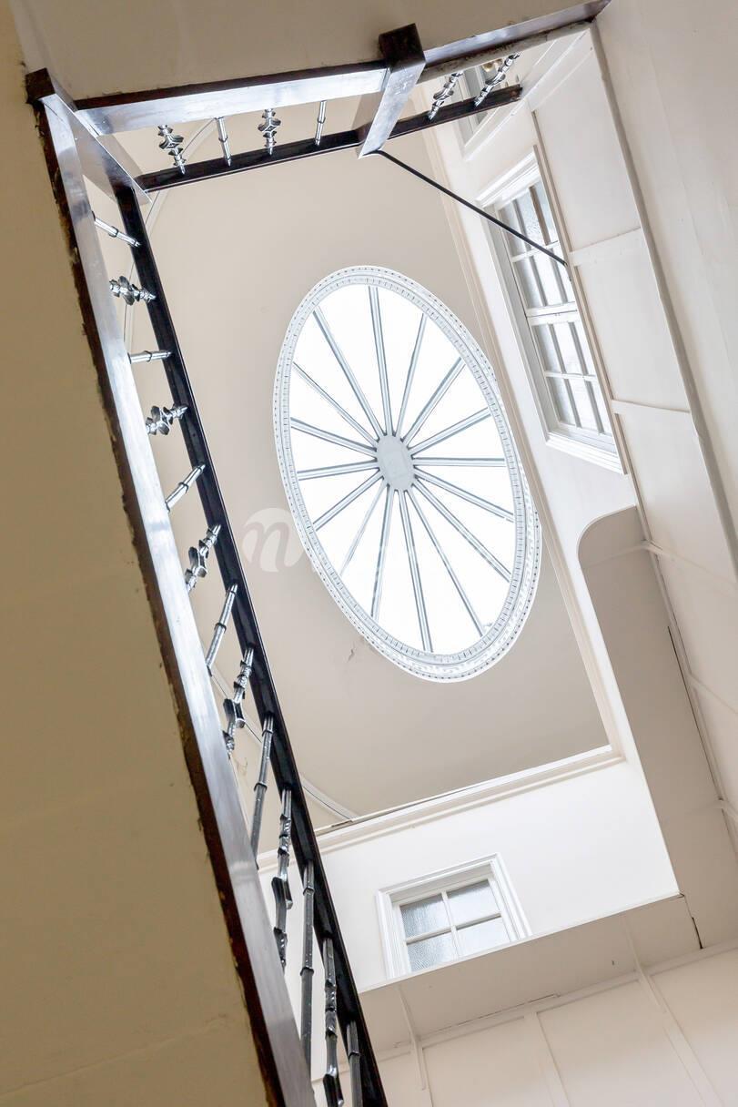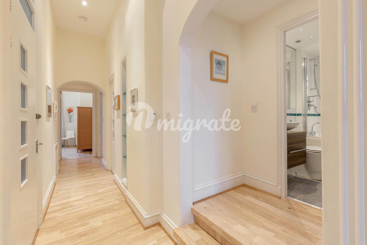 Гостиная с правильными пропорциями переходит в искусно спроектированную кухню через стеклянные двойные двери. Отсюда можно найти полезный подсобный шкаф. Всего в доме три просторные спальни, в третьей спальне установлены встроенные шкафы, а в главной спальне есть собственная душевая комната. Ванная комната дополняет интерьер наряду с вместительным шкафом для хранения вещей в прихожей. Общий коридор особенно красив и находится в очень хорошем состоянии нынешними жильцами. Впечатляющий купол является прекрасным примером георгианской архитектуры и заливает лестницу естественным светом.