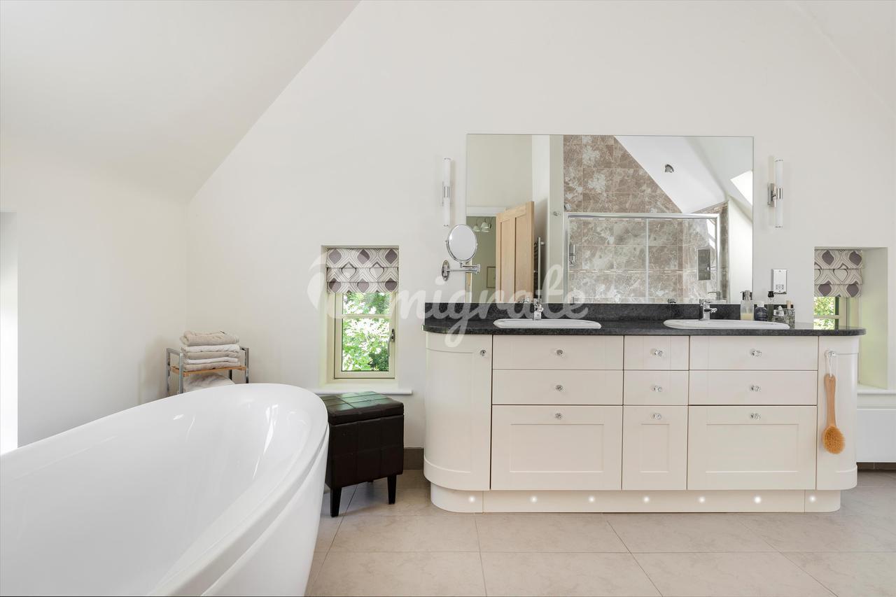 Broadmead House приглашает вас в большой светлый зал для приемов с галерейной площадкой и сводчатым потолком, а затем в различные помещения для приемов, включая кабинет, гостиную с открытым огнем, гостиную с современным газовым камином и двери, ведущие в садовую комнату и далее на террасу. терраса. Подсобное помещение и гардероб также находятся перед входом во впечатляющую жилую площадь кухни, в которой есть ряд встроенных единиц с гранитными поверхностями, кладовая и ряд встроенных приборов. В номере имеется прекрасный бар для завтрака на острове, а также место для большого обеденного стола и зона отдыха. Первый этаж имеет галерейную площадку, ведущую в главную спальню со сводчатым потолком, просторную ванную комнату, гардеробную и еще одну комнату, которая может быть продолжением гардеробной или идеальной детской. В распоряжении имеются еще три спальни с двуспальными кроватями, одна с ванной комнатой и семейная ванная комната для обслуживания двух других спален. Пристройка обеспечивает идеальное жилое пространство для создания дохода или для гостей и семьи. Важно отметить, что пристройка может быть полностью интегрирована в основной дом с дверью, ведущей из гостиной, и дверью на первом этаже, ведущей на лестничную площадку.