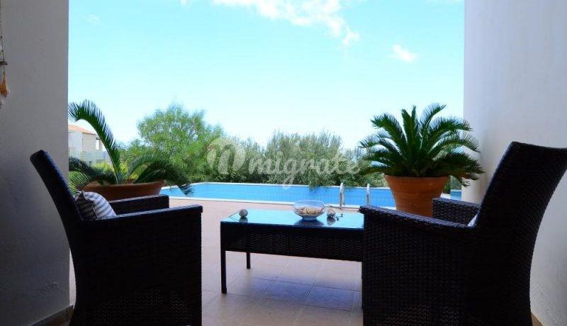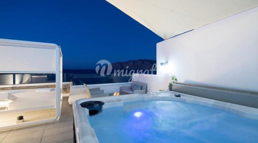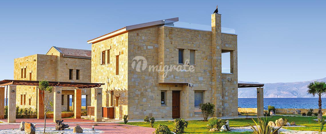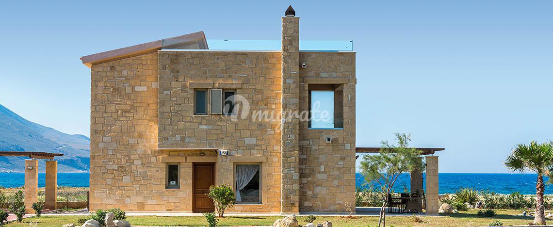 Вилла расположена на первой линии моря в новом жилом комплексе из 16 вилл в городке Кисамос, на северо-западе острова Крит, в 300 метрах от марины и в 2 км от центра города, где находится множество ма