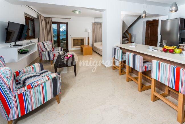 Вилла расположена на острове Крит в 3 км от города Айос-Николаос и в 50 минутах езды от аэропорта. Расстояние до моря составляет 3 км. Первый этаж включает гостиную открытого плана, совмещенную со сто