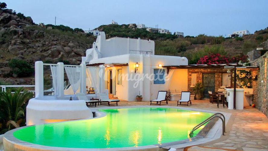 Эта традиционно построенная вилла с собственным бассейном элегантно оформлена и полностью оборудована. Время в пути на автомобиле до Миконоса – 5 минут, расстояние до порта острова – 2 км, до аэропорт
