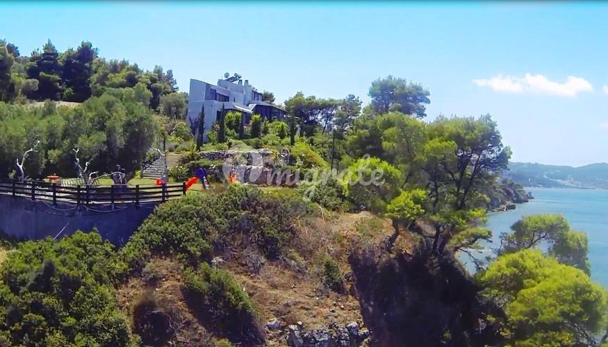Вилла расположена в окружении соснового леса в поселке Агиос Николаос на полуострове Ситония. Резиденция может похвастаться потрясающей традиционной архитектурой, а также элементами, вдохновленными ок