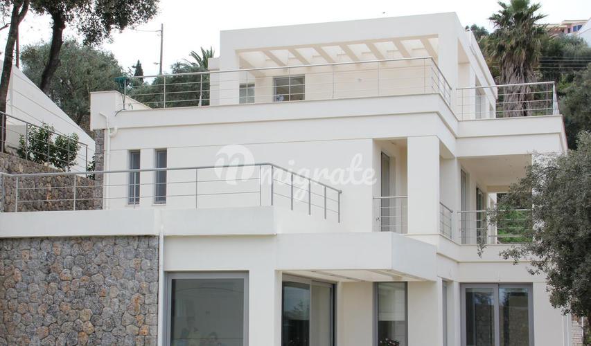 Вилла расположена в привилегированном месте в деревне Контокали, всего в 8 км от города Корфу. С виллы открываются виды на море и горы. На первом этаже находится гостиная открытого плана площадью 250