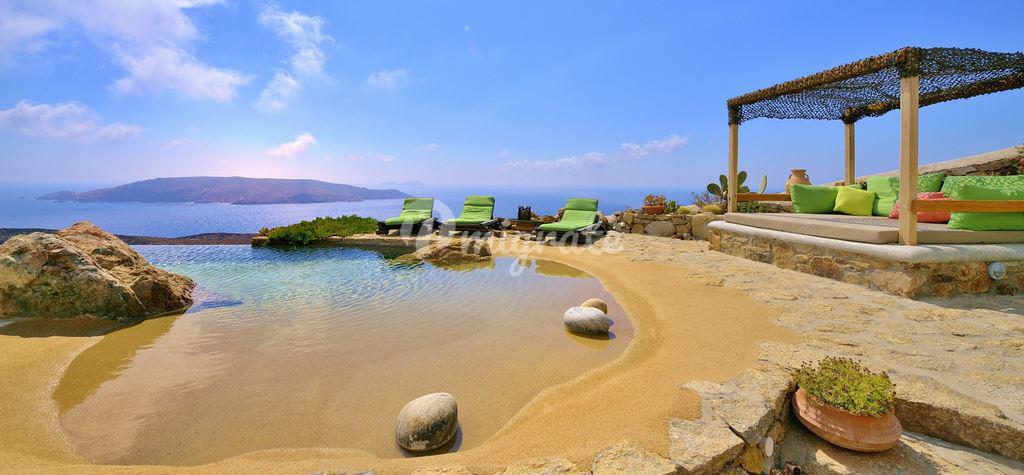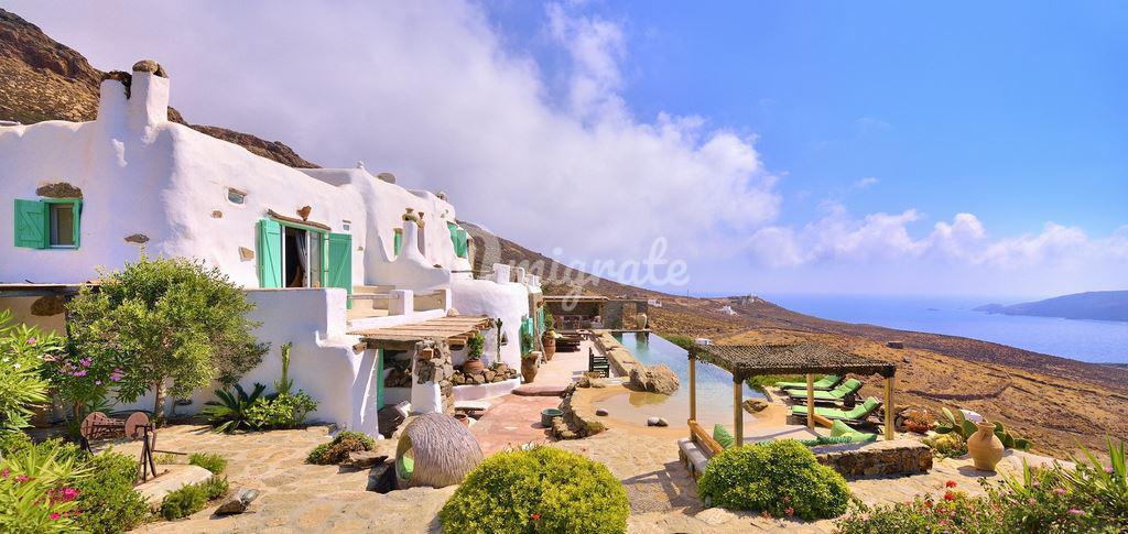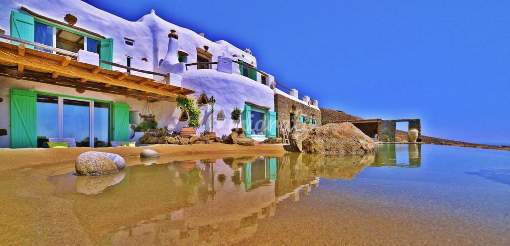 Вилла в традиционном стиле архитектуры Киклад расположена на острове Миконос. Вилла имеет жилую площадь 436 кв. м, располагается на 3 этажах и состоит из прихожей, гостиной с камином, столовой, кухни,