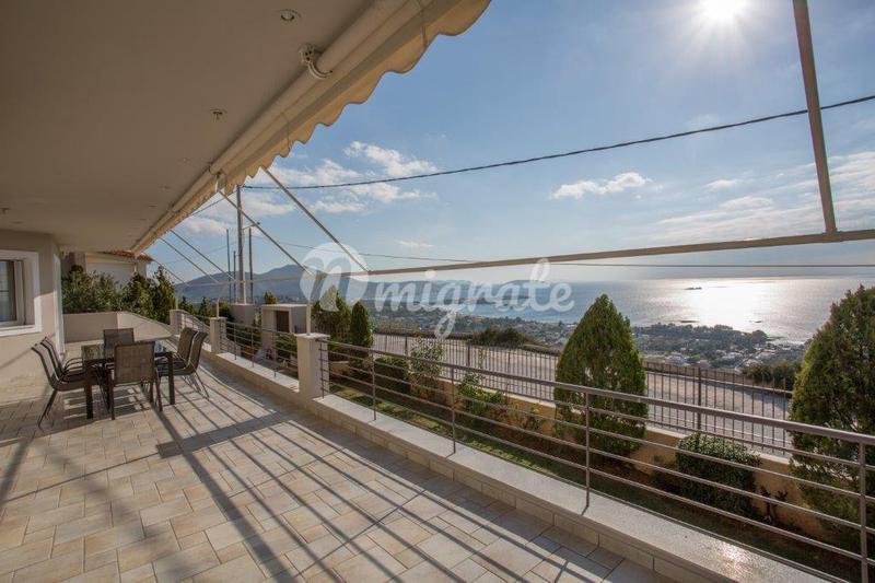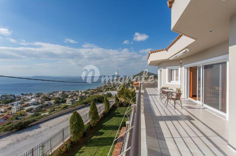 Двухэтажная вилла расположена на курорте Лагонисси в восточной части Аттики, недалеко от пляжа. Вилла с высокими потолками (3,2 м) и стильными интерьерами, включает просторную гостиную и столовую с па