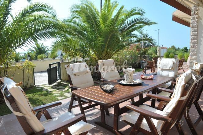 Вилла полностью отремонтирована и меблирована, расположена на первой береговой линии в Никити (Халкидики), есть частный пляж. Расположенная в зеленой зоне с газоном, деревьями и цветами, она занимает