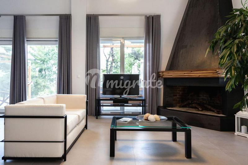 Современная вилла расположена в окружении сосновых лесов и оливковых рощ, в районе богемного курорта Сани, откуда открывается великолепная панорама на гору Олимп.Полностью меблированная трехуровневая