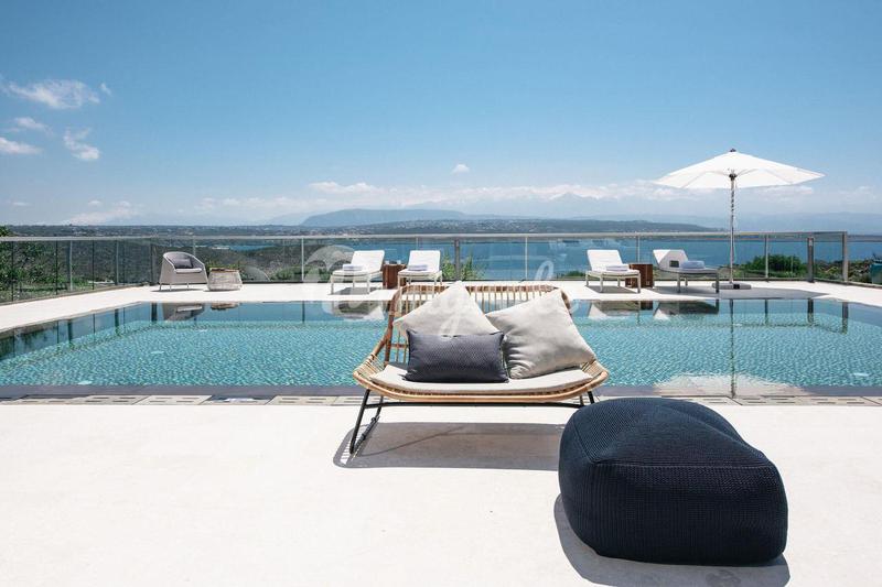 Роскошная современная вилла расположена между прибрежными поселками Каливес и Альмирида в муниципалитете Ханья на острове Крит. С территории виллы открывается захватывающий вид на залив Суда и полуост