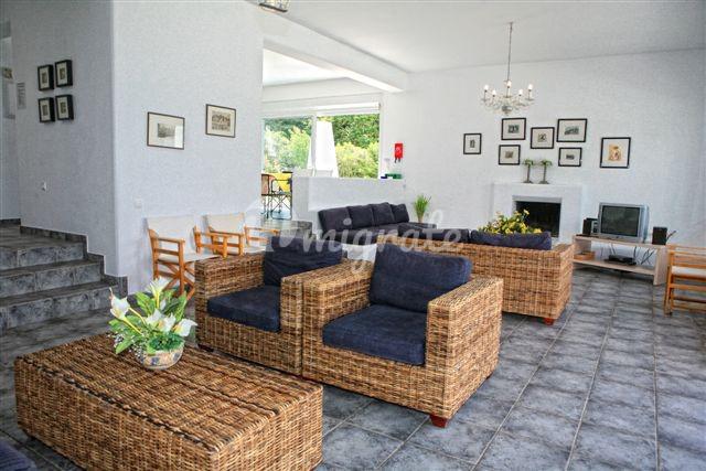 Вилла расположена в привилегированном месте в деревне Контокали, всего в 8 км от города Корфу. С виллы открываются виды на море и горы. На первом этаже находится гостиная открытого плана площадью 250