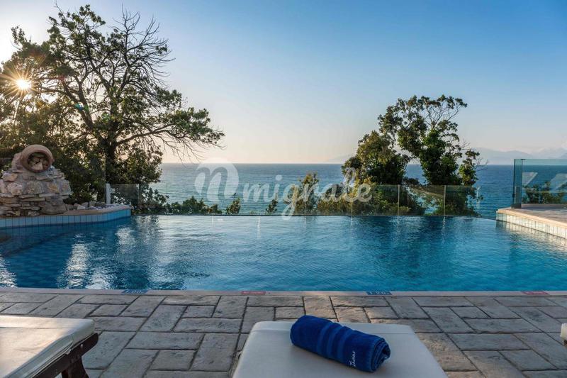 Роскошная вилла расположена на частной территории на острове Корфу. Вилла включает основной дом и апартаменты для персонала/гостей.На территории разбиты ландшафтные сады с оливковыми деревьями и распо