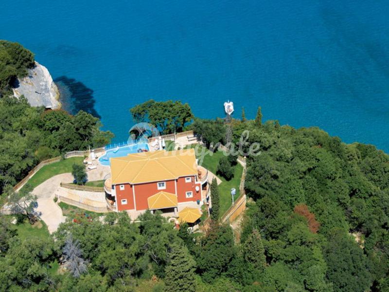 Вилла расположена на острове Корфу, всего в нескольких шагах от кристально голубых Ионических вод и в пяти минутах езды от пристани Гувия. На вилле разбиты роскошные ландшафтные сады, расположен бассе