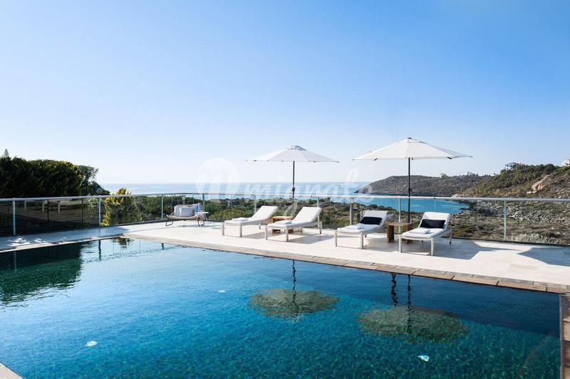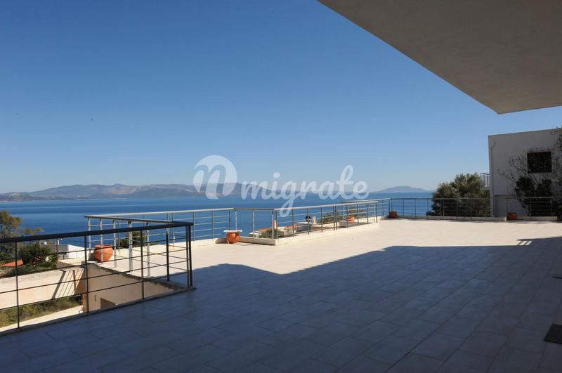 Современная вилла с видом на море и горы расположена в уединенном месте на полуострове Пелопоннес, рядом с песчаным пляжем. Вилла состоит из 7 спален, 7 ванных комнат, прихожей, двух гостиных, кухни,