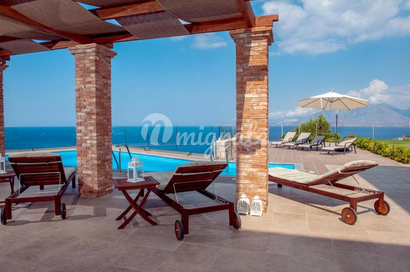 Роскошная современная вилла расположена между прибрежными поселками Каливес и Альмирида в муниципалитете Ханья на острове Крит. С территории виллы открывается захватывающий вид на залив Суда и полуост