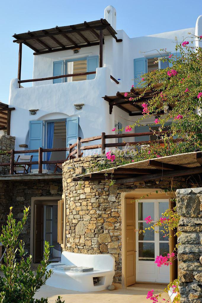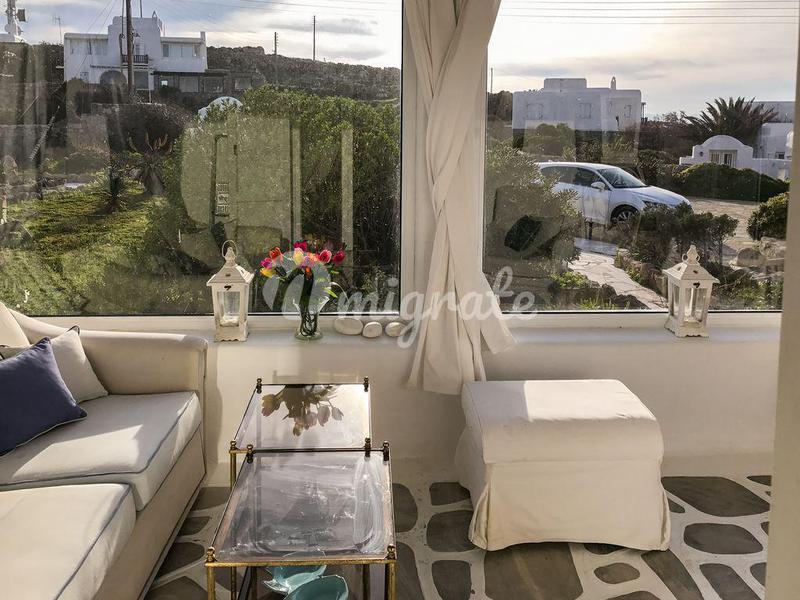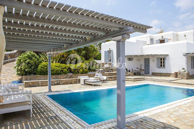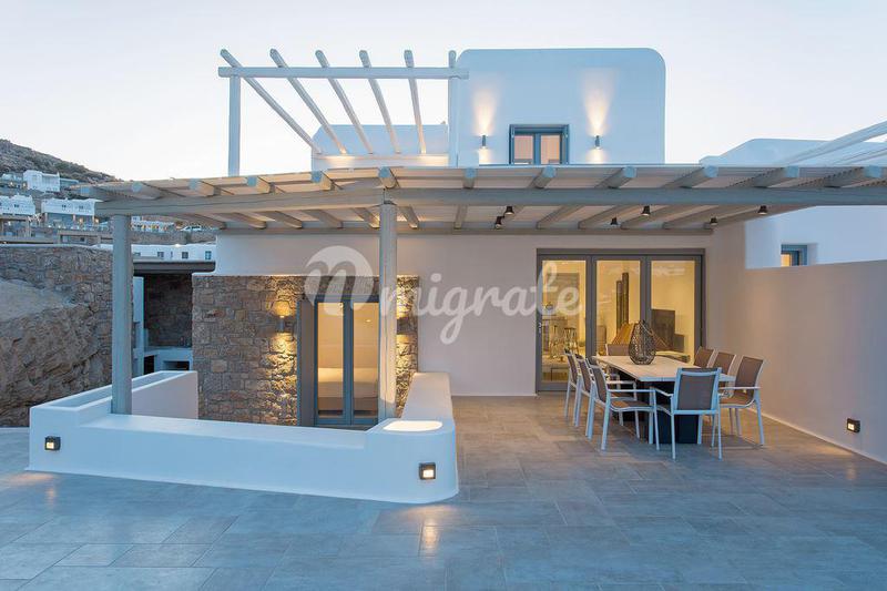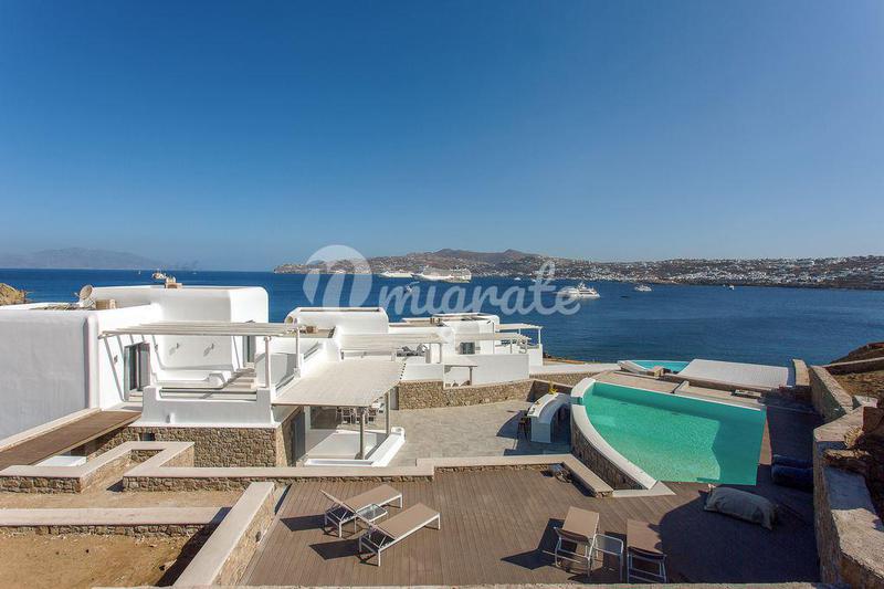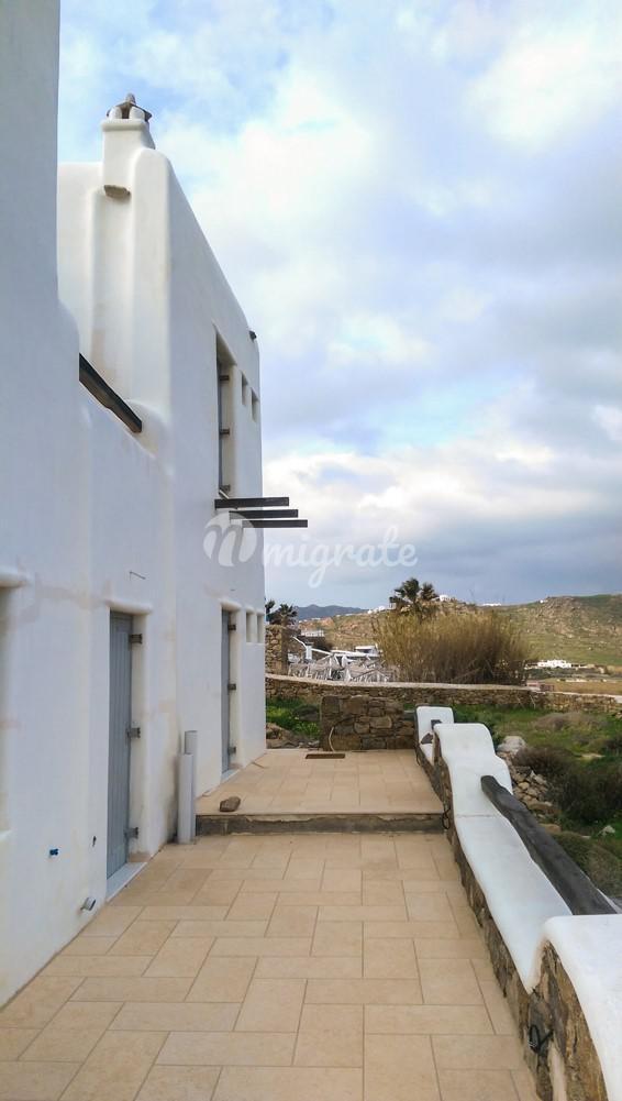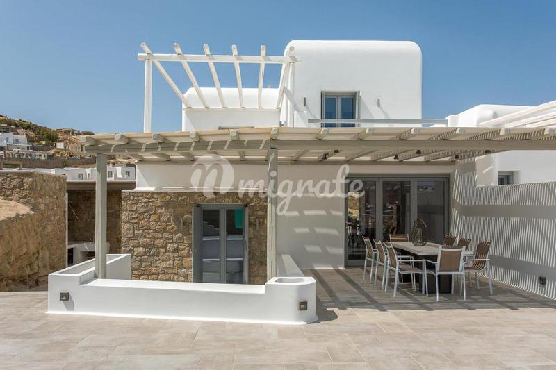 Новая вилла расположена на берегу моря, в 5 минутах езды до центра Миконоса. Вилла входит в жилой комплекс, состоящий из трех вилл. С виллы открывается вид на море и город. Вилла включает 4 спальни с
