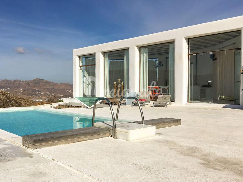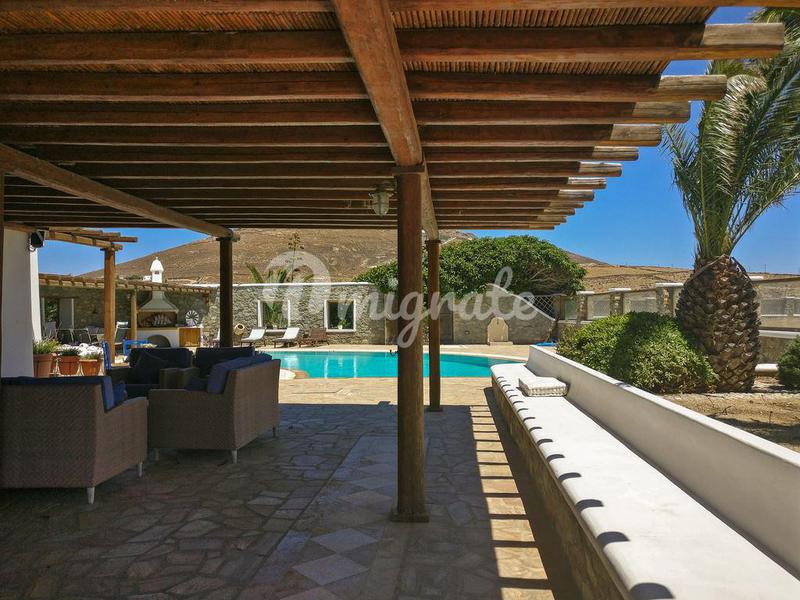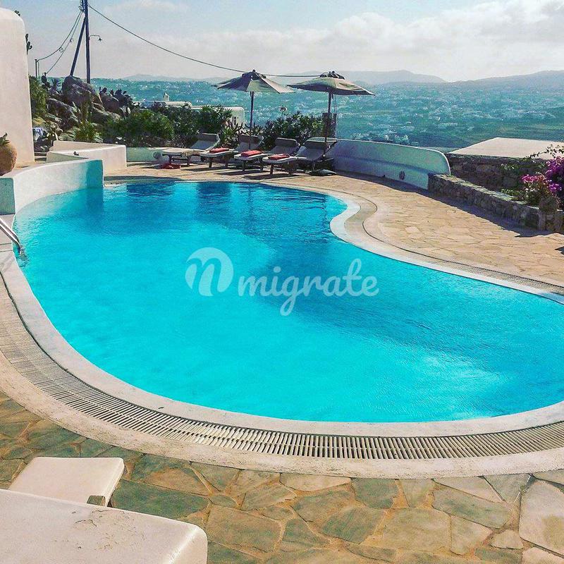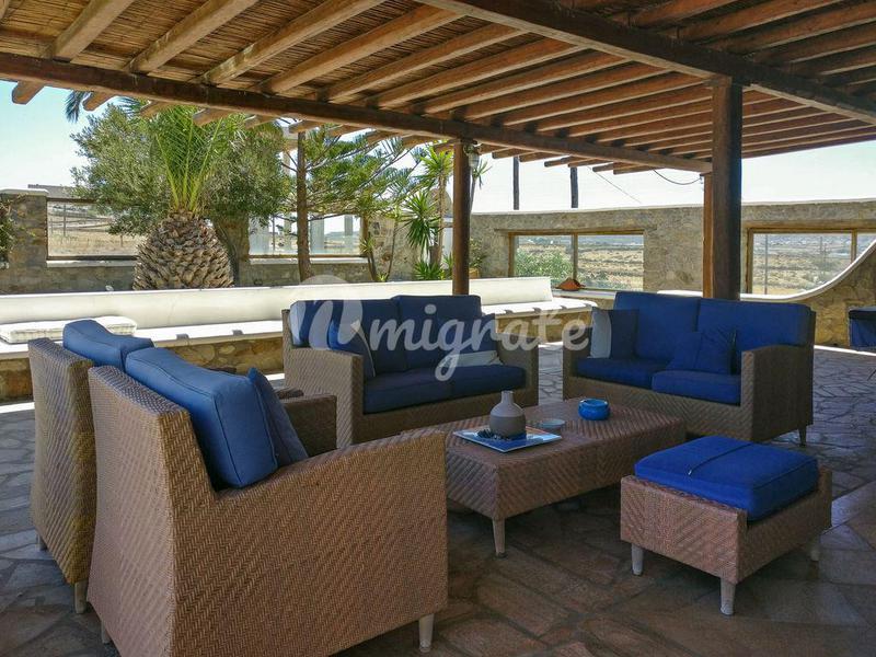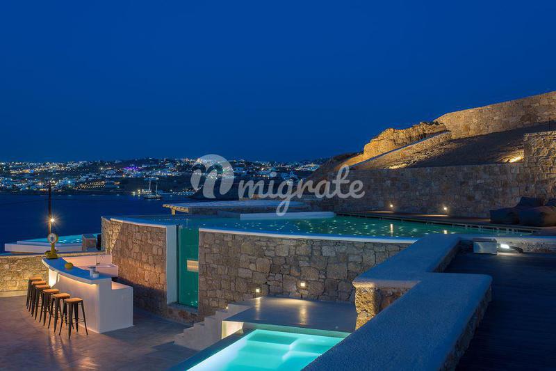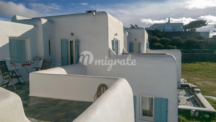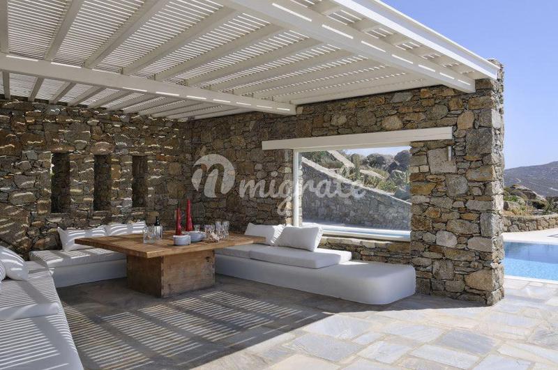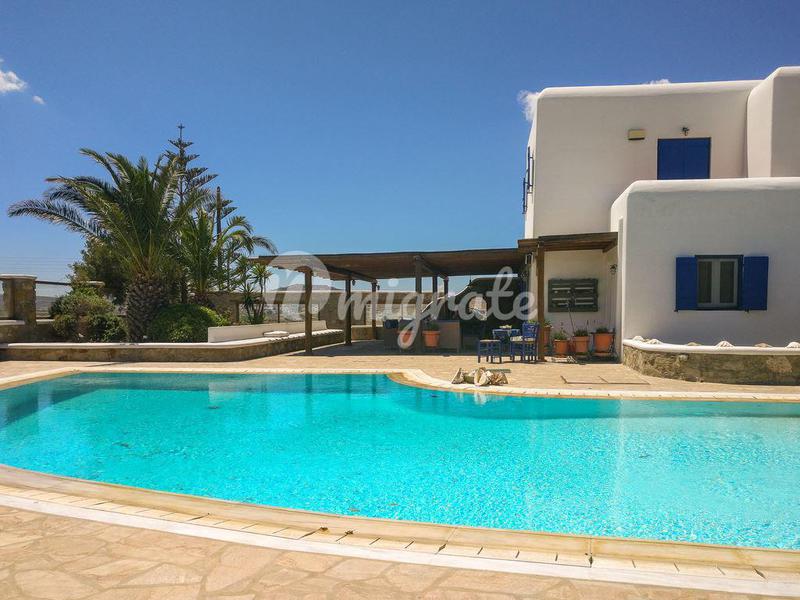 Новая вилла расположена на берегу моря, в 5 минутах езды до центра Миконоса. Вилла входит в жилой комплекс, состоящий из трех вилл. С виллы открывается вид на море и город. Вилла включает 4 спальни с