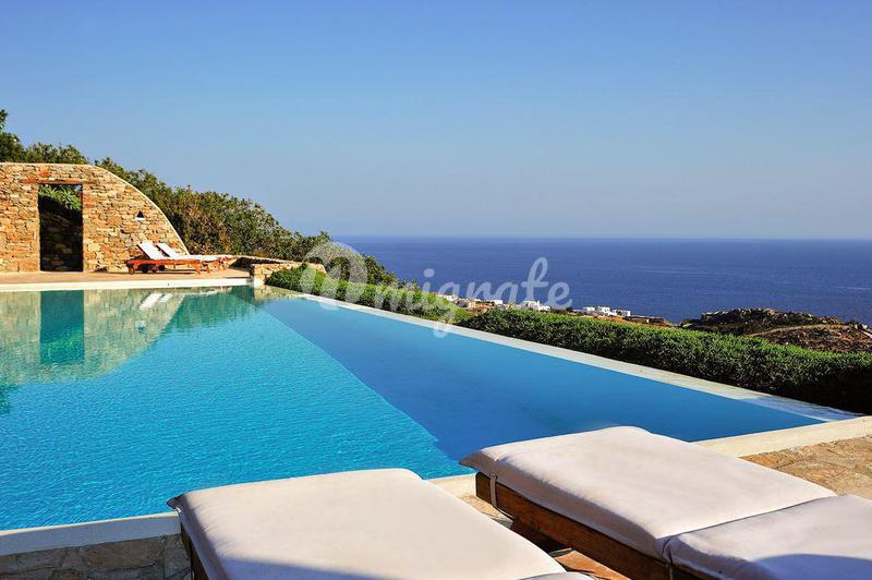 Современная вилла с панорамным видом на Эгейское море расположена на живописном участке, над пляжем Калафатис, где находится множество таверн, баров и водных спортивных центров. Вилла включает 6 спаль
