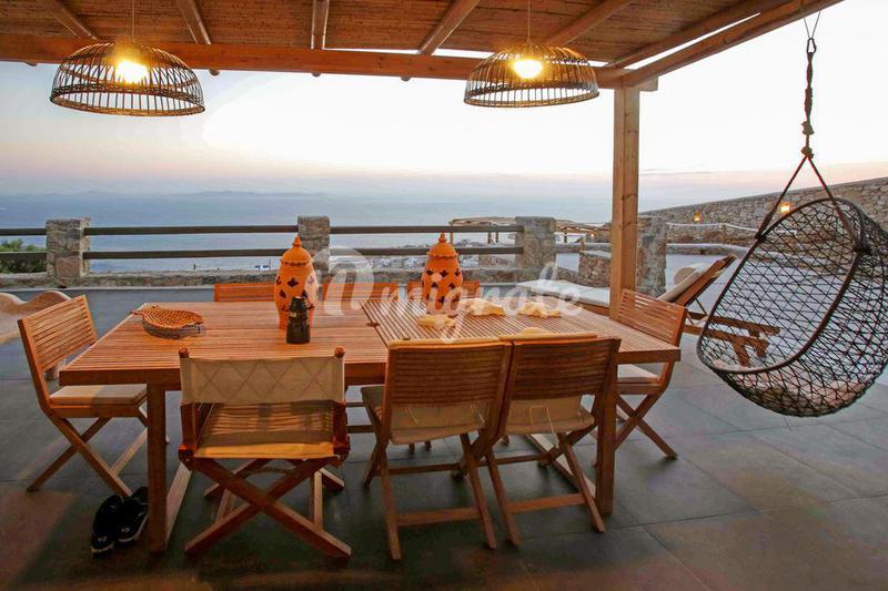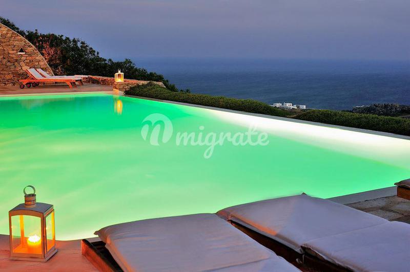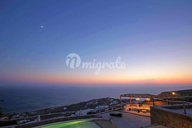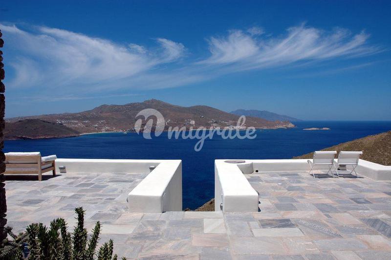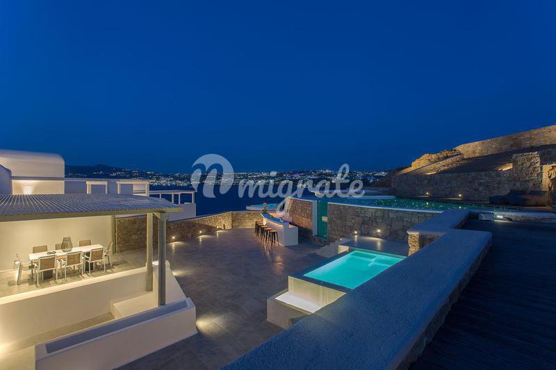 Новая вилла расположена на берегу моря, в 5 минутах езды до центра Миконоса. Вилла входит в жилой комплекс, состоящий из трех вилл, из которых она расположена на самом возвышенном участке. С виллы отк