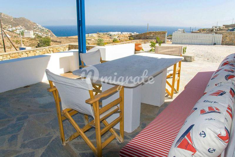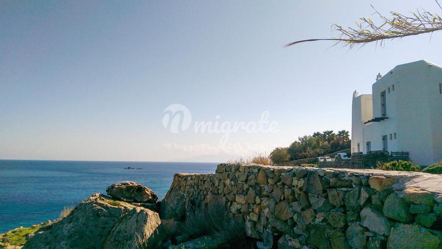 Дом с видом на море расположен в районе Элиа, в 5 минутах от известных пляжей Миконоса. Дом состоит из 3 этажей. Первый этаж включает спальню, ванную комнату, гостиную и кухню открытого плана, соедине