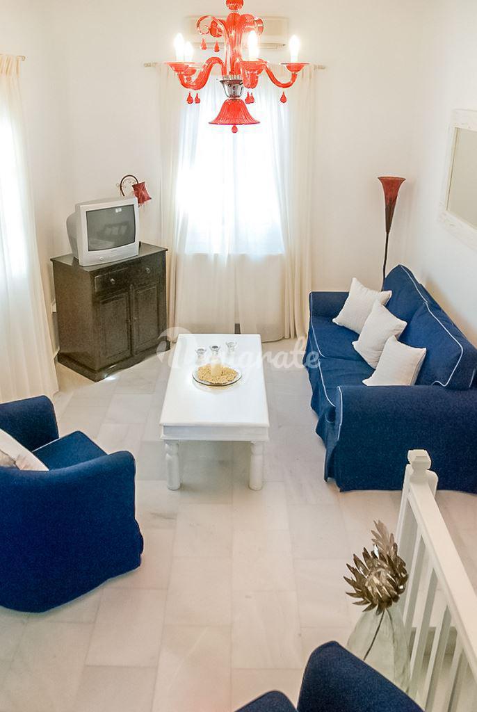 Вилла с видом на море находится в поселке Ано-Мера, где расположено множество кафе, ресторанов, таверн, магазинов, кондитерских и мини-маркетов. В пяти минутах езды от поселка расположены самые популя