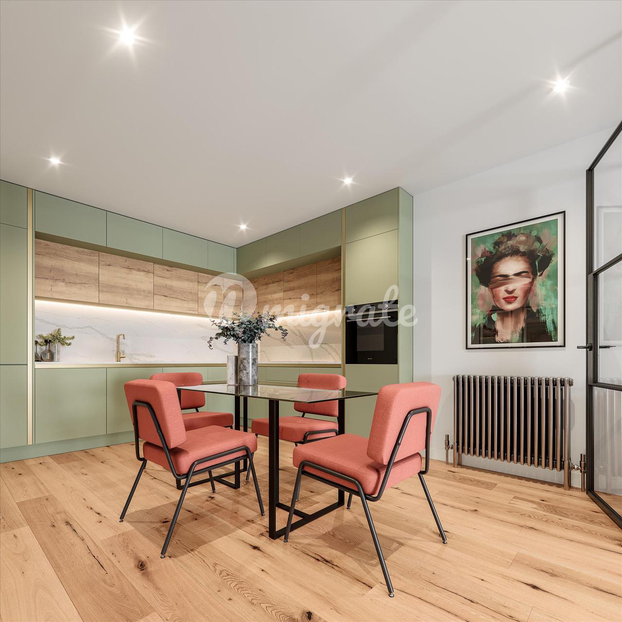 К услугам гостей студии, апартаменты с одной спальней и апартаменты с двумя спальнями, расположенные на 4 этажах этого здания в стиле бутик в самом центре Уоппинга. Эти уникальные апартаменты отличаются обилием естественного света и отсылают к историческому прошлому этого места, включая использование ширм, витиеватых потолков, бронзовых скобяных изделий и радиаторы в восстановленном стиле. Палитра зеленого шалфея и дуба в сочетании с окнами-иллюминаторами придает дому вид на реку. Разработчик стремился создать зрелую, теплую, роскошную атмосферу лофта, и коллекция попала в точку. Апартаменты-студии доступны по цене от 440 000 фунтов стерлингов. Из окон-иллюминаторов Green Bank Lofts, расположенных на 4 этаже, открывается потрясающий вид на город. Каждая квартира-студия отличается от других и была спроектирована таким образом, чтобы максимально использовать универсальную площадь, с полностью оборудованными кухнями, полностью оборудованными ванными комнатами и интуитивно понятными спальными зонами.