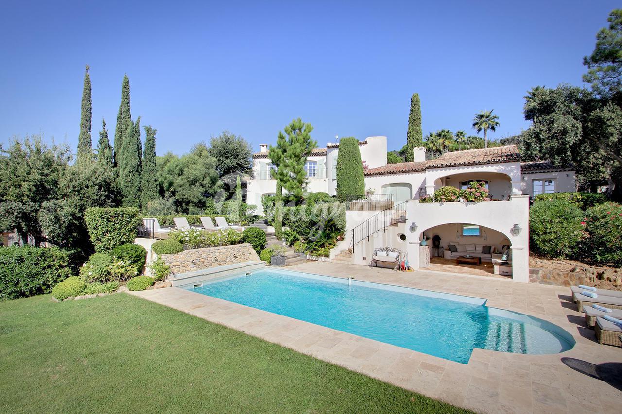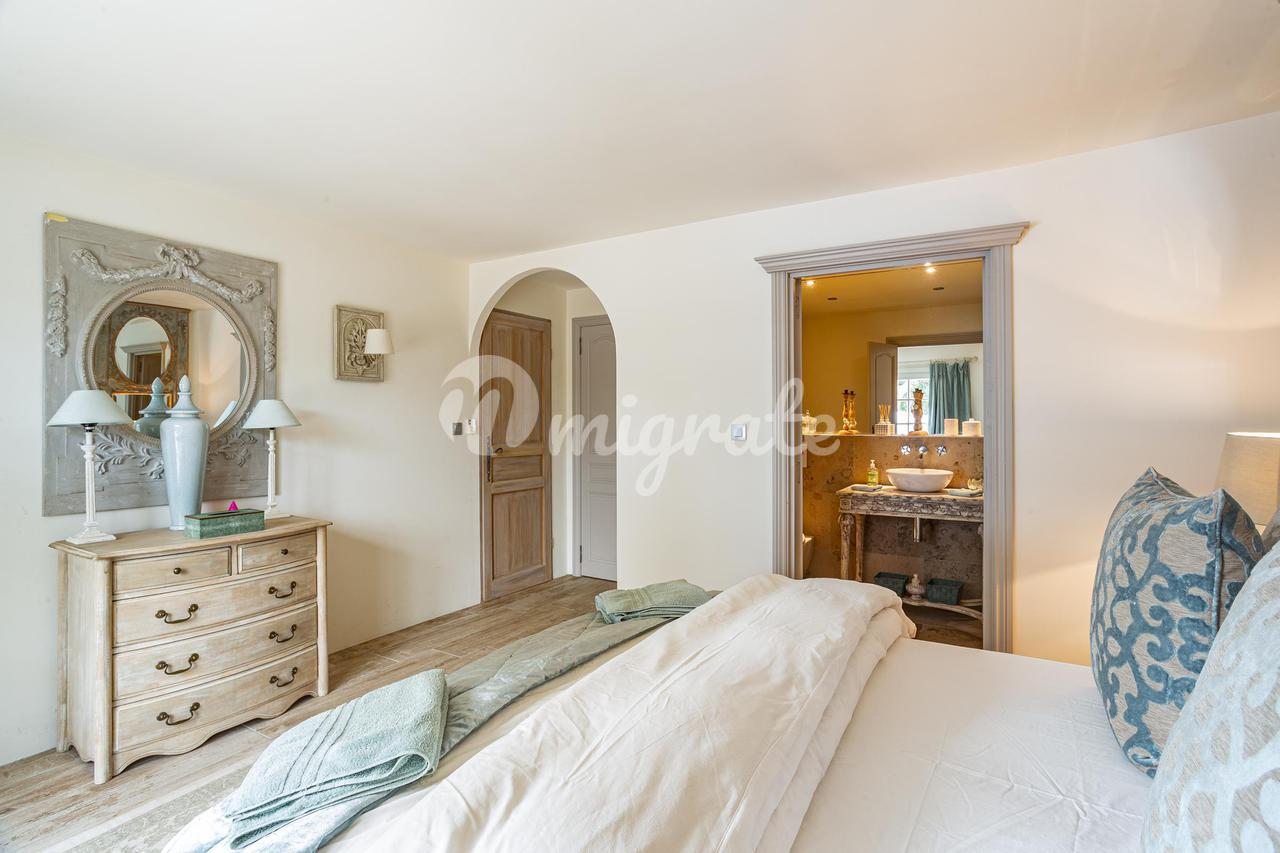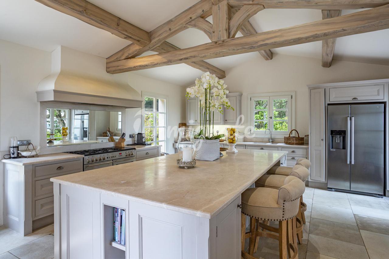 Предлагая около 300 кв. м прекрасно отремонтированных помещений на двух этажах, этот превосходный дом включает в себя: Гостиная с впечатляющим камином, открытая кухня, ведущая в просторную столовую, всего пять спален, две ванные комнаты и три душевые. Расположенный примерно на 2950 кв.м. очаровательных частных ландшафтных садов с летней кухней с душем, великолепным бассейном и домиком у бассейна.