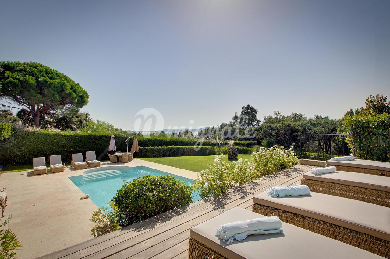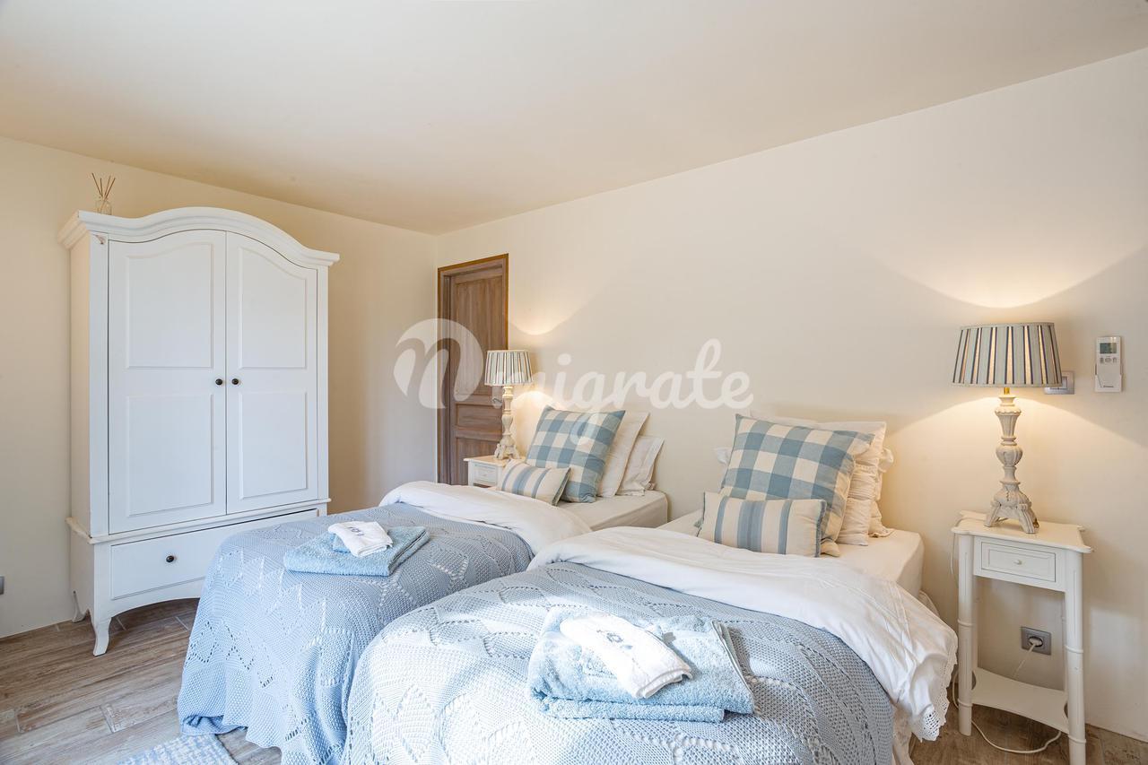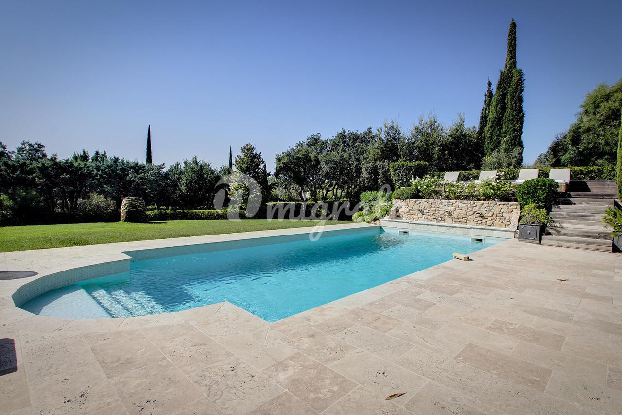 Предлагая около 300 кв. м прекрасно отремонтированных помещений на двух этажах, этот превосходный дом включает в себя: Гостиная с впечатляющим камином, открытая кухня, ведущая в просторную столовую, всего пять спален, две ванные комнаты и три душевые. Расположенный примерно на 2950 кв.м. очаровательных частных ландшафтных садов с летней кухней с душем, великолепным бассейном и домиком у бассейна.