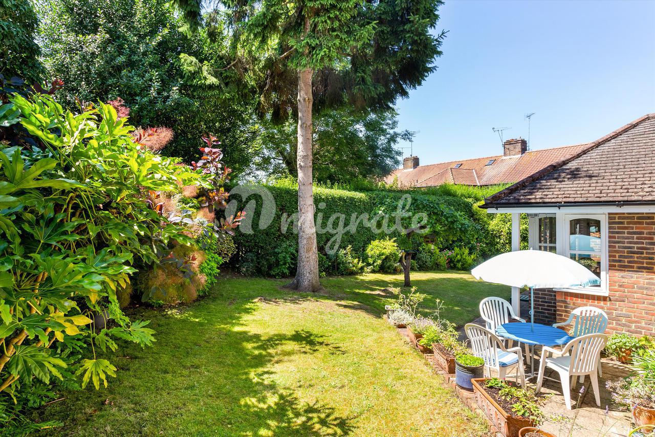 Сад, выходящий на южную сторону, имеет зрелую границу, что придает этому живописному дому ощущение уединения.