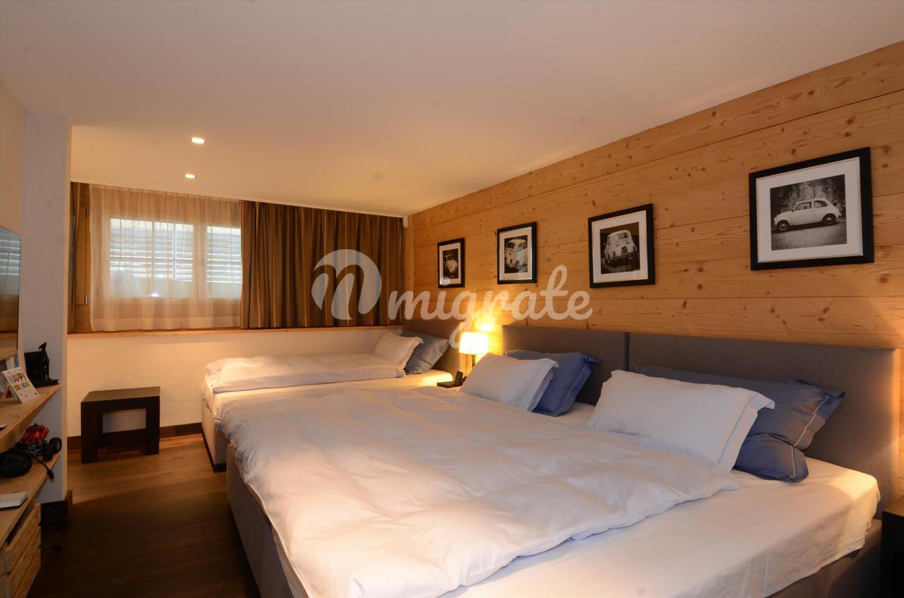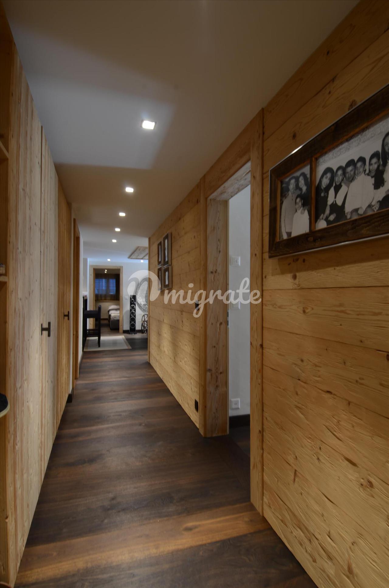 Площадь квартиры составляет около 156 кв. м и состоит из прихожей с гардеробной, большой открытой гостиной-столовой с камином и балконом, открытой кухни, главной спальни с ванной комнатой и балконом, двух гостевых спален, обе с ванными комнатами, одна с балкон, а другой с гардеробной. Также имеется гостевой туалет и прачечная. На цокольном этаже есть помещение для хранения лыж и погреб, а также два парковочных места в подземном гараже.