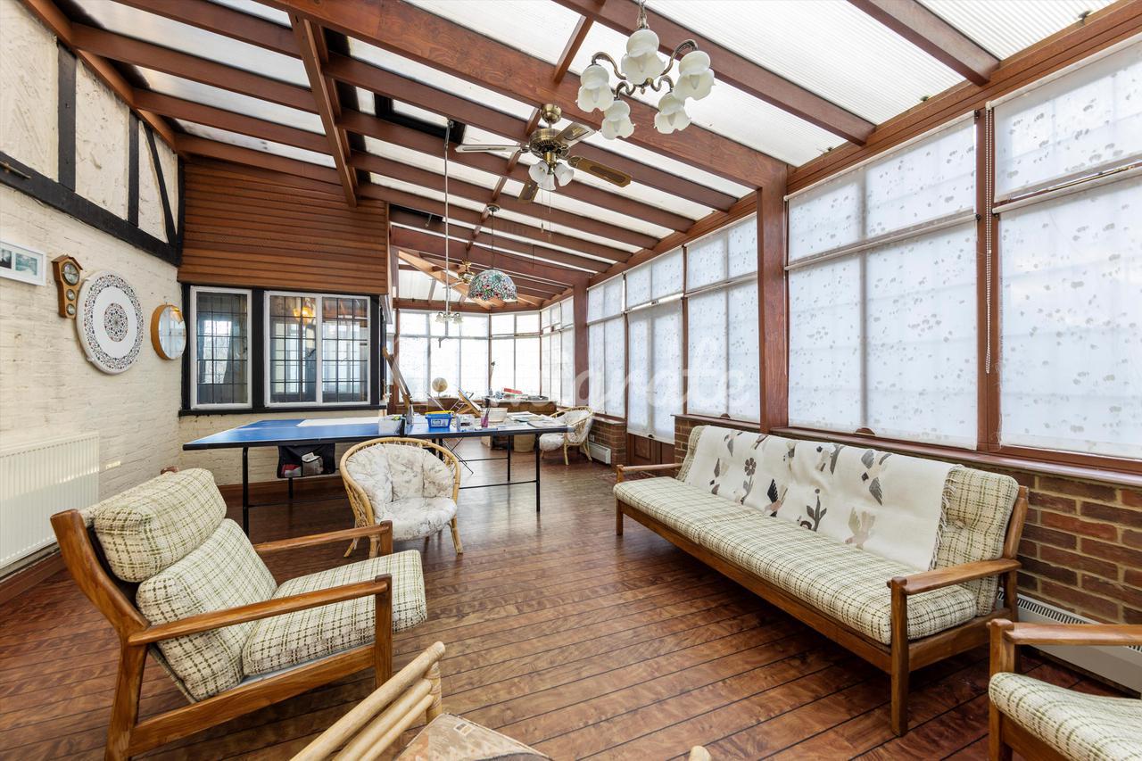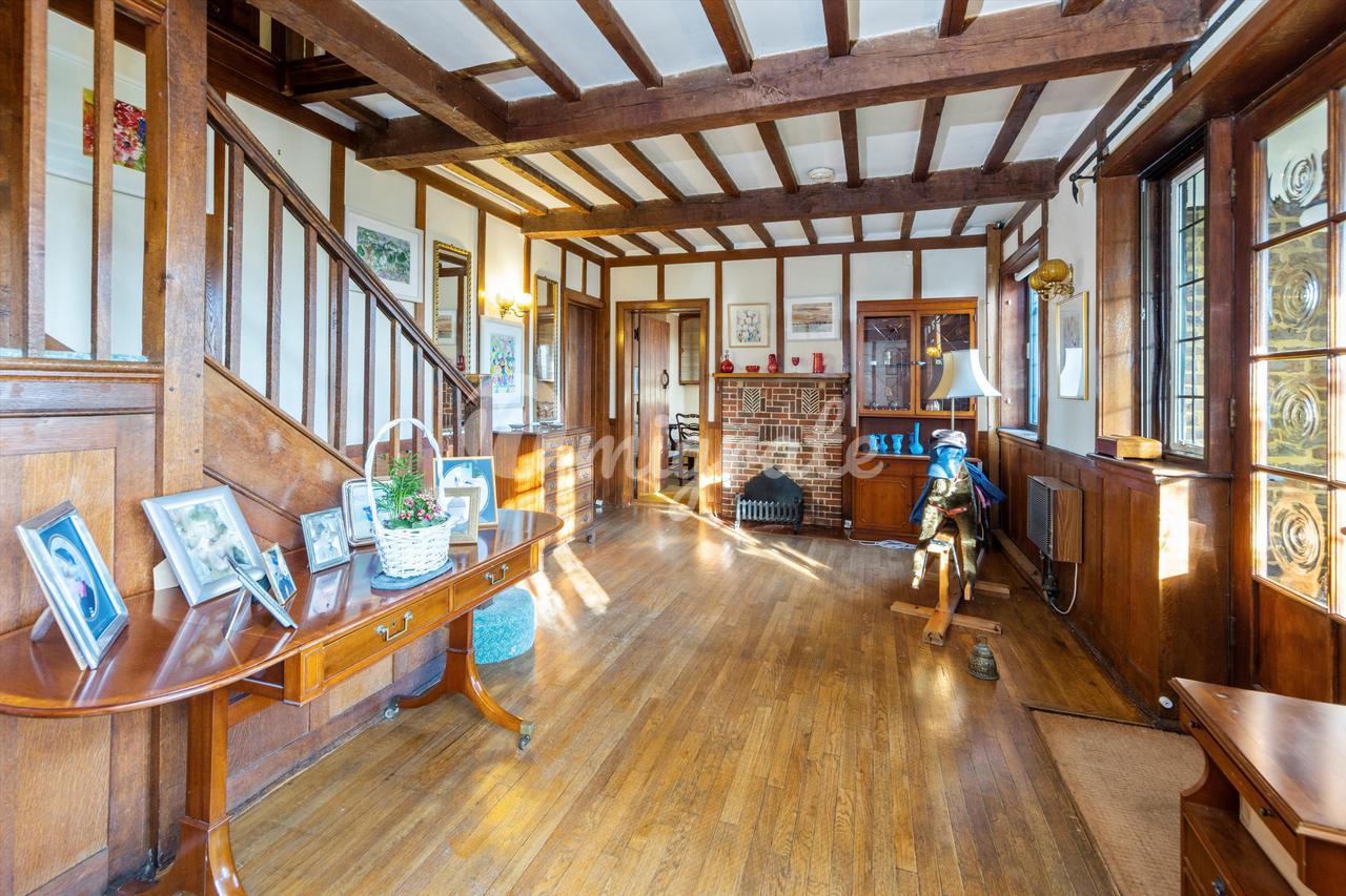 Имущество находится на необычно большом и широком участке для Гилфорда и имеет бассейн, расположенный сбоку от дома, а также летний домик, гараж на две машины и садовую мастерскую рядом.