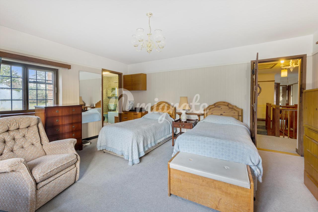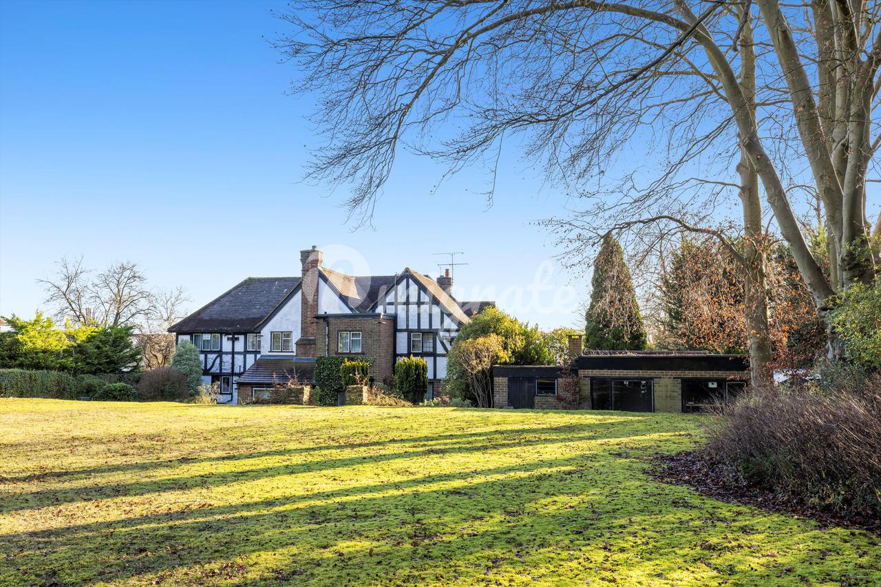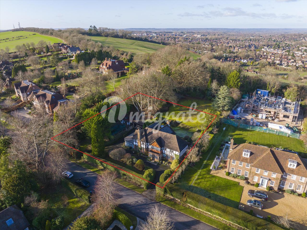 Имущество находится на просторном и широком участке для Гилфорда и имеет бассейн, расположенный сбоку от дома, а также летний домик, гараж на две машины и садовую мастерскую рядом.
