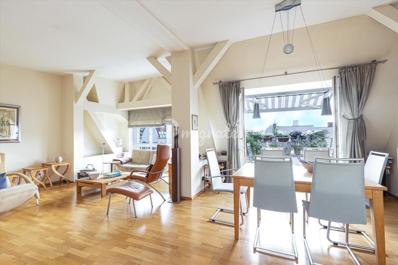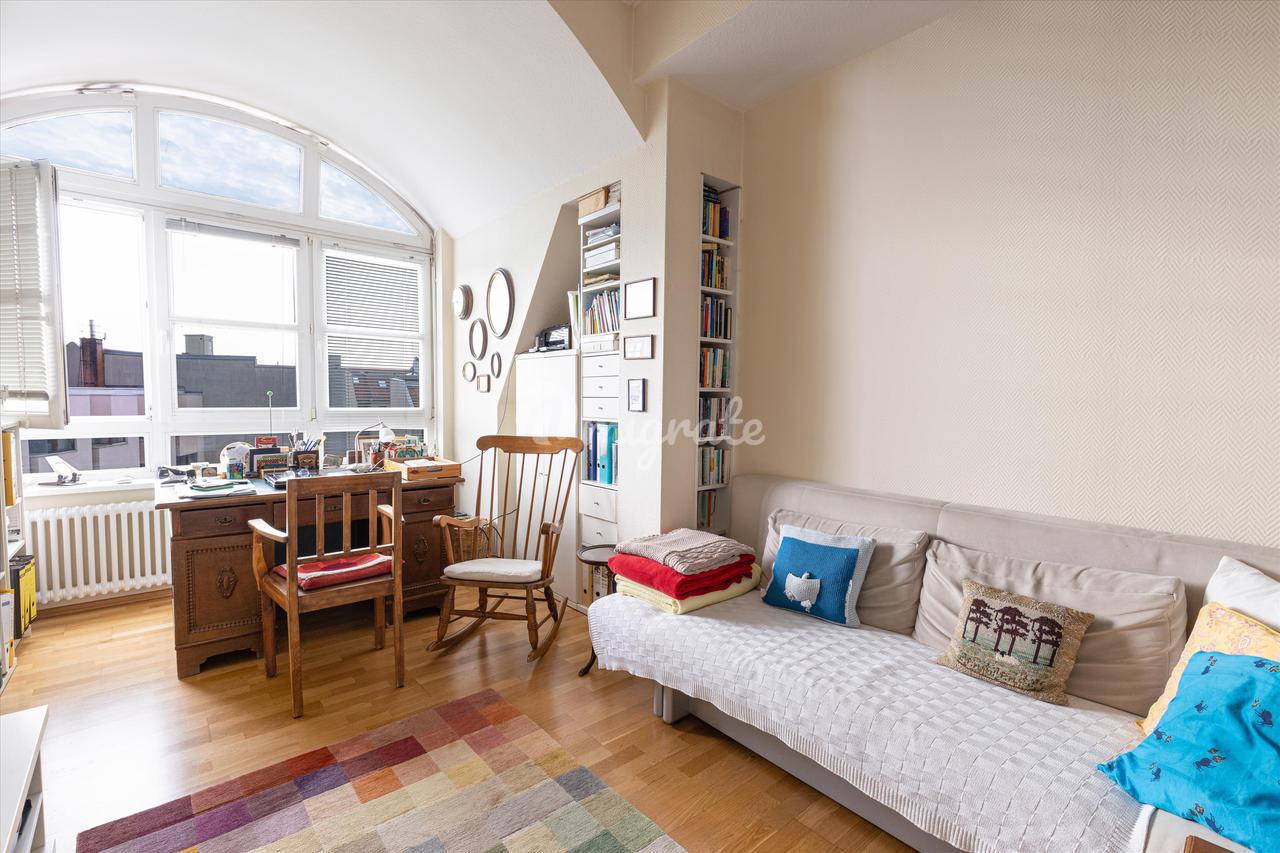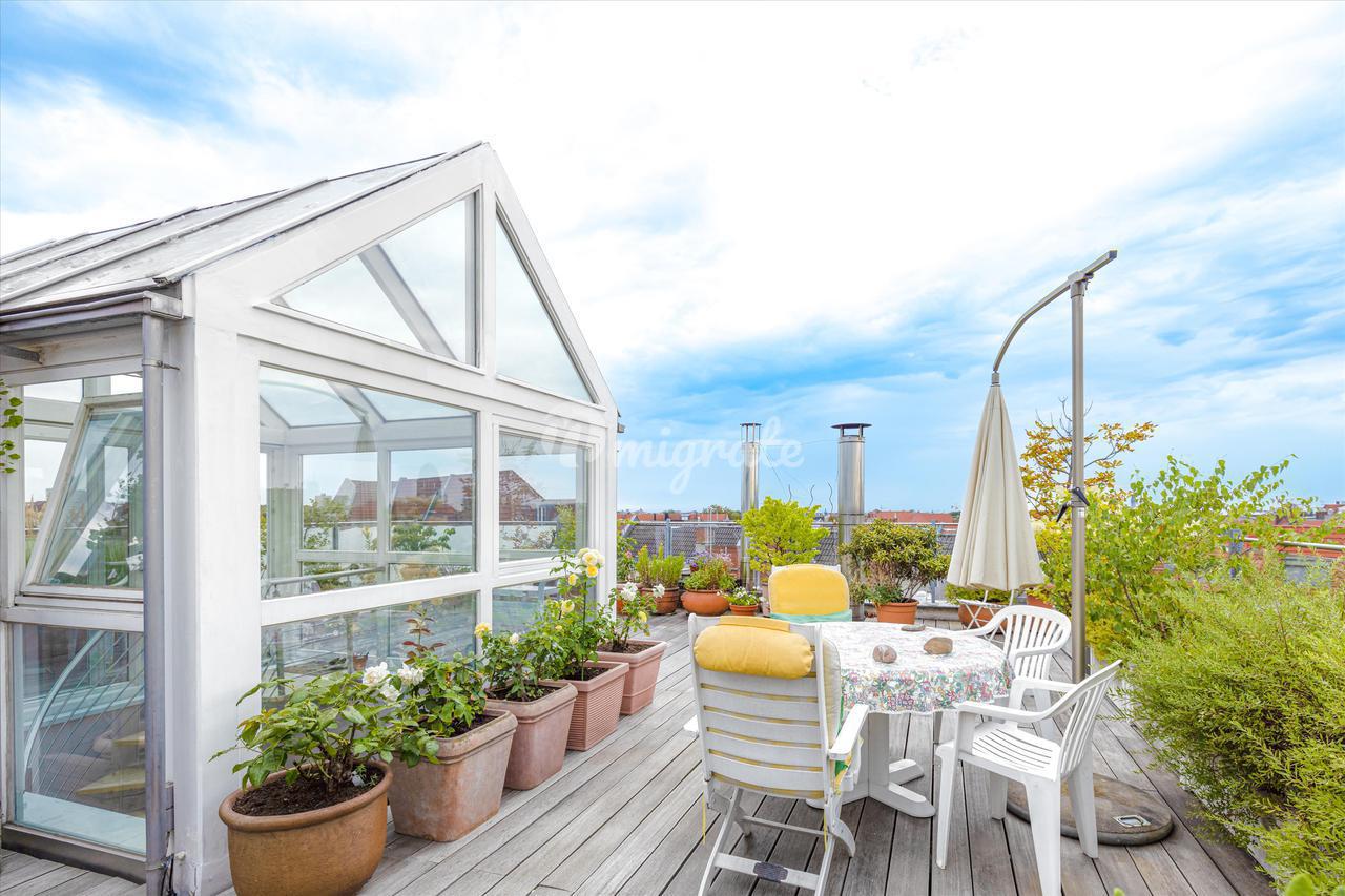 Недвижимость предлагает жилую площадь 269 кв.м и расположена на верхнем этаже исторического здания с лифтом. Она состоит из светлой гостиной с камином и обеденной зоной, полностью оборудованной кухни, подсобного помещения, четырех спален и трех ванных комнат. Апартаменты дополняют гостевая комната с собственной душевой комнатой, спа-кабинет с сауной и душем, а также кладовая. В пентхаусе также есть терраса на крыше с великолепным видом на Берлин, подвал, который можно использовать как комнату для хобби, и дополнительная квартира для няни с отдельной кухней.