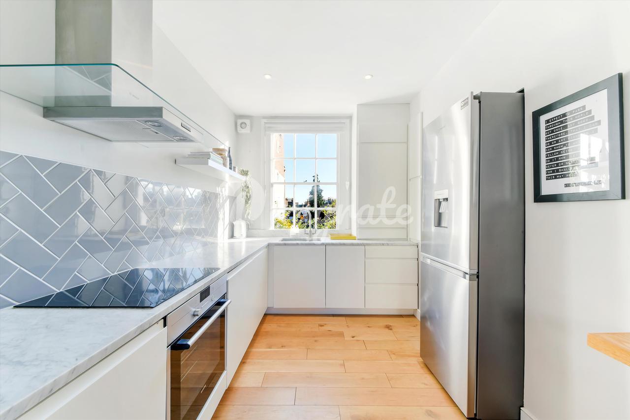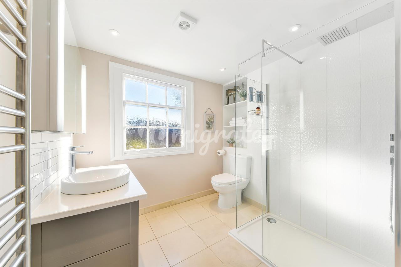 Собственность имеет светлую и просторную атмосферу во всем и имеет потрясающую приемную, выходящую на юго-запад, с двумя большими окнами створки во всю высоту и паркетными полами. Кухня полуоткрытой планировки предлагает гладкую современную отделку и имеет привлекательный вид на соседние сады. На верхнем этаже находится просторная спальня с обширной встроенной кладовкой и прилегающей душевой комнатой, отделанной в современном стиле.