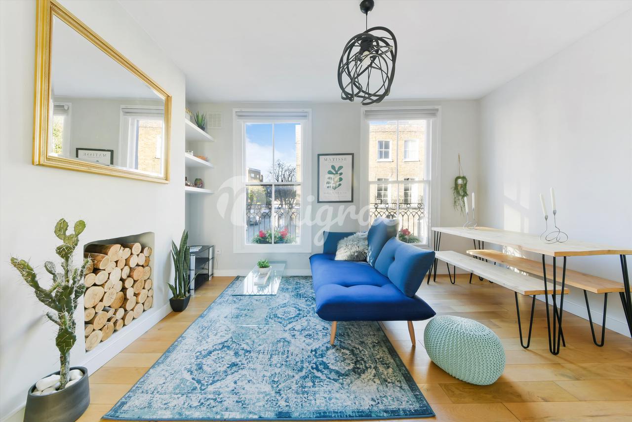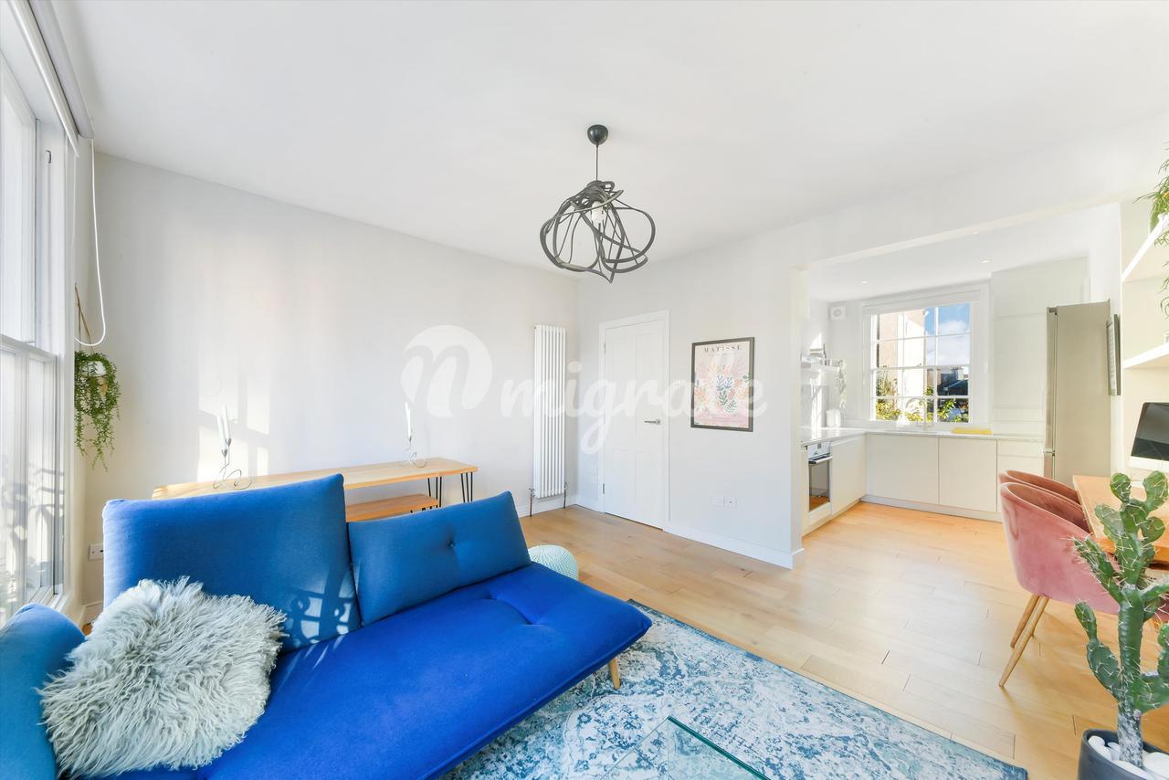 Красиво оформленный и чрезвычайно просторный мезонет с одной спальней площадью более 650 кв. Футов расположен на двух верхних этажах привлекательного дома с террасами в георгианском стиле, внесенного в список памятников архитектуры II степени.