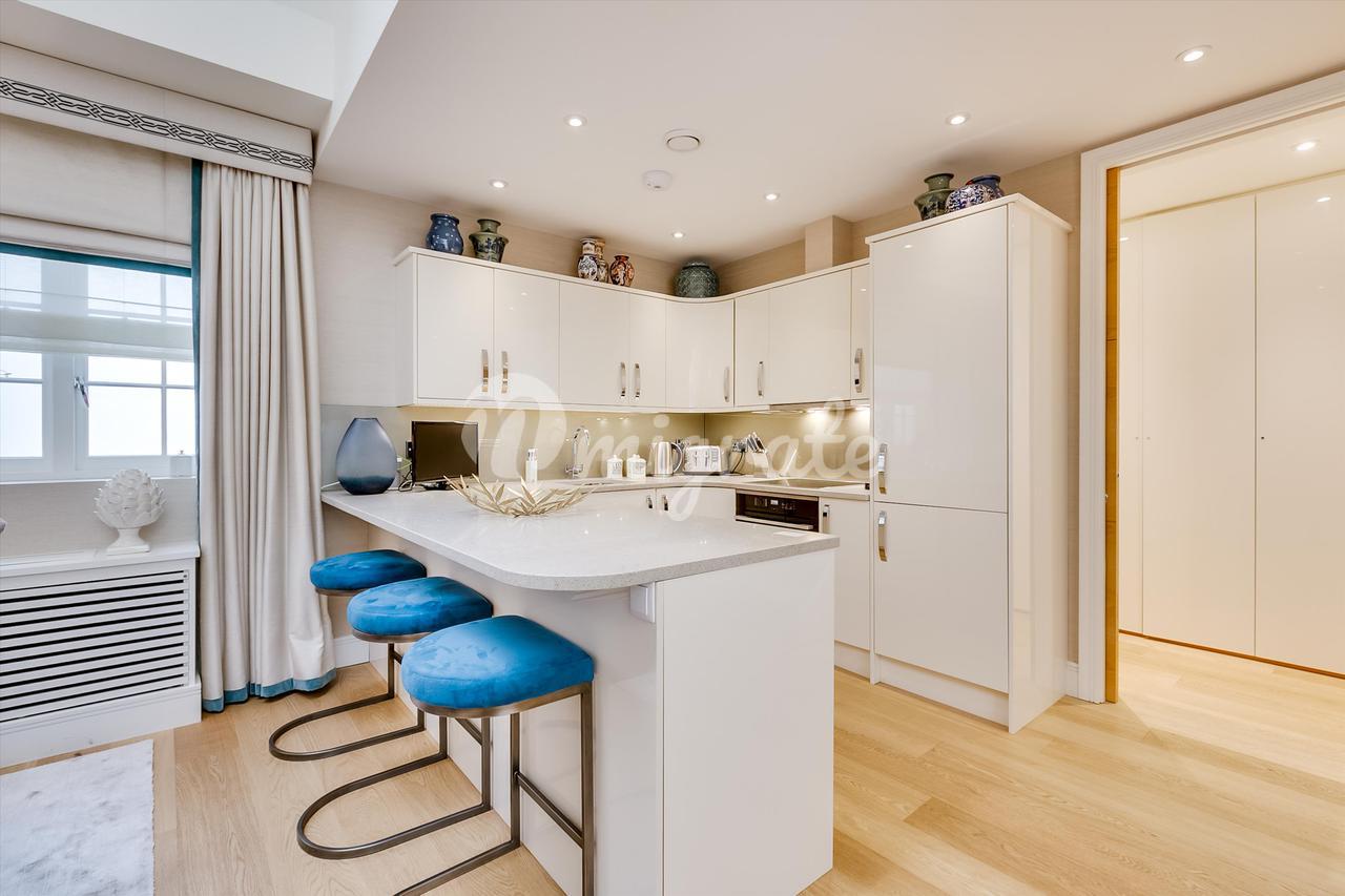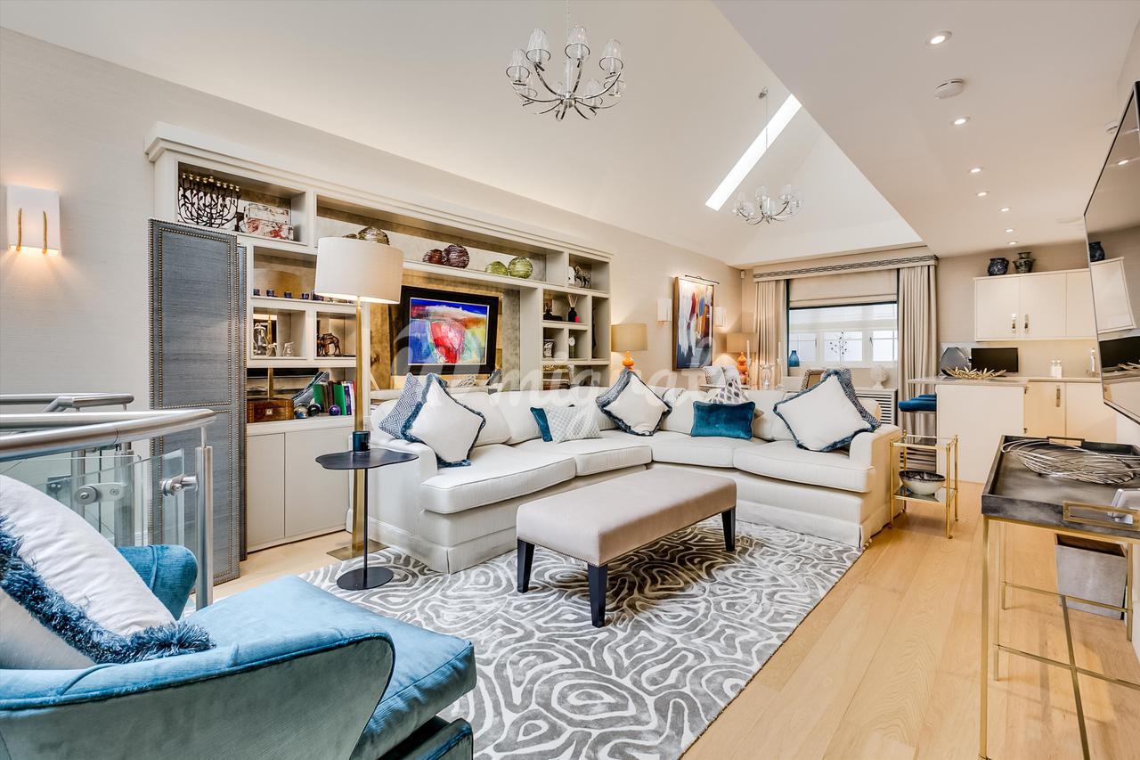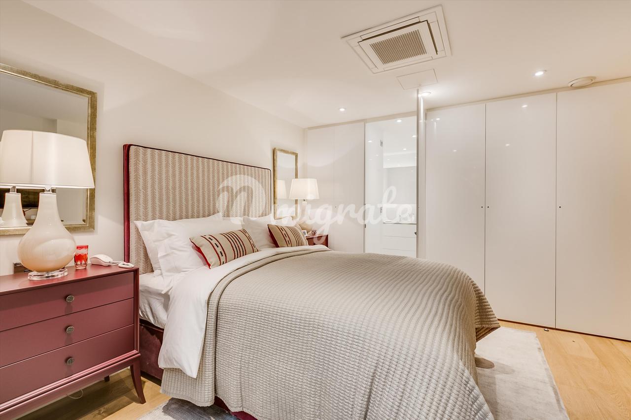 На первом этаже находится современная кухня открытого плана и светлая гостиная. Доступ к цокольному этажу осуществляется по элегантной стеклянной лестнице, через которую проникает естественный свет. Наверху находится очаровательная главная спальня первого этажа с ванной комнатой.