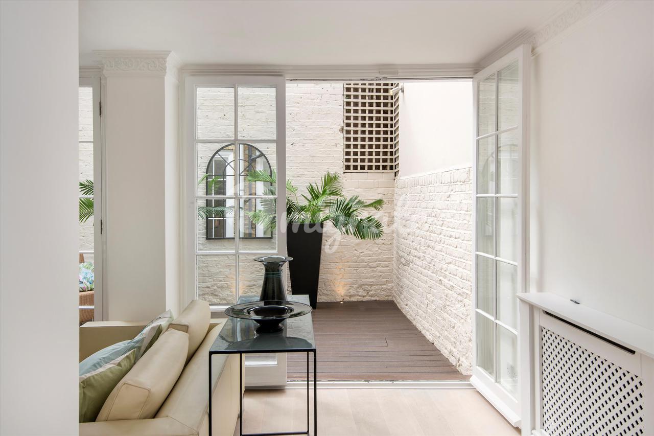 На нижнем уровне первого этажа есть частный сад во внутреннем дворе, выходящий на запад, и еще одна терраса в задней части приемной на первом этаже. Большие окна способствуют очень светлому, воздушному, современному жилью с гибкими зонами для семьи и развлечений.